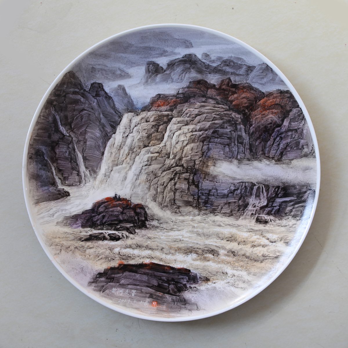 丁邦海《黄河交响》瓷盘彩绘,直径370mm-丁邦海刻瓷|丁邦海 黄玉双刻瓷艺术