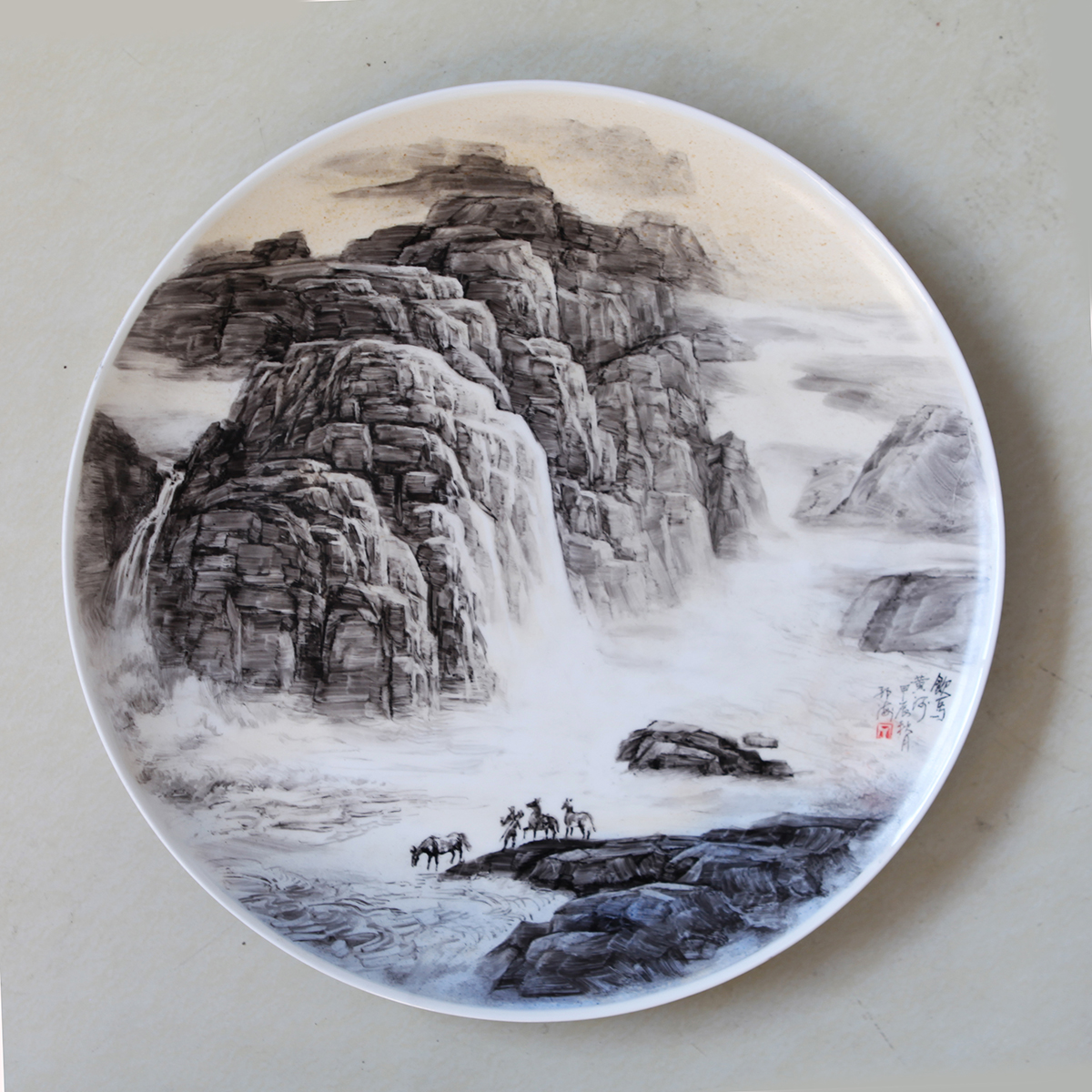 丁邦海《饮马黄河》瓷盘彩绘,直径370mm-丁邦海刻瓷|丁邦海 黄玉双刻瓷艺术