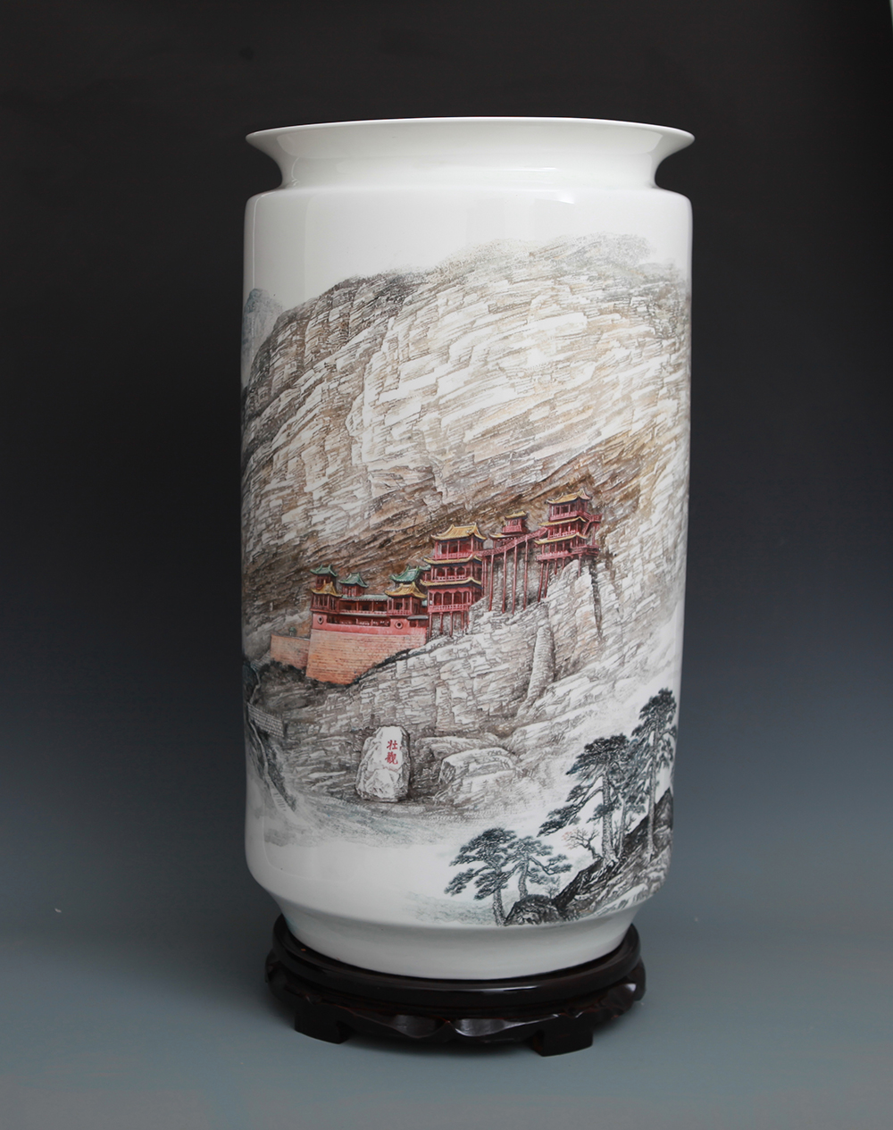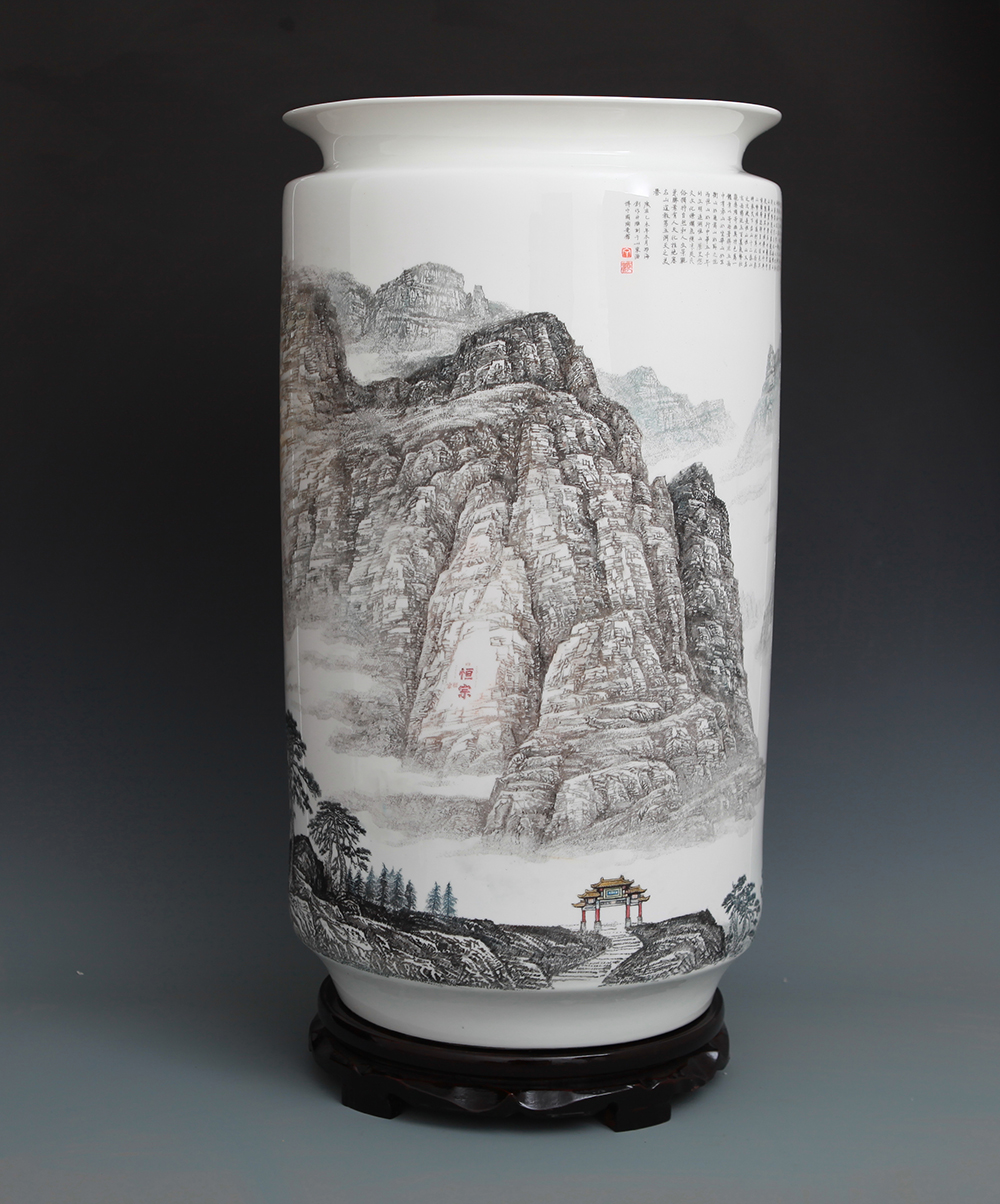 《中华五岳雄千古系列作品之一——北岳恒山》刻瓷瓶,高65cm..