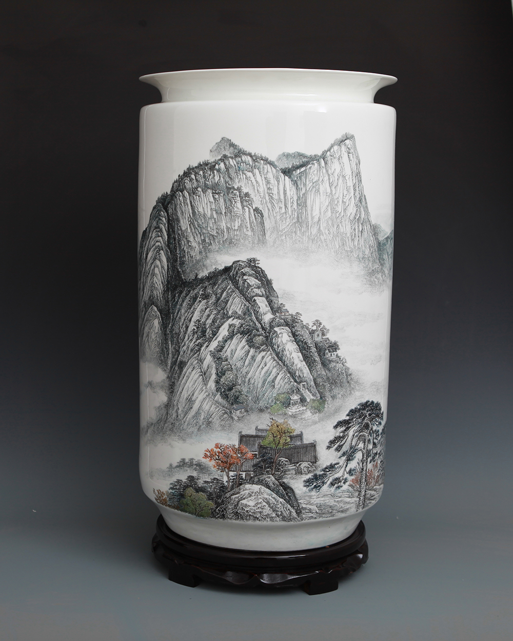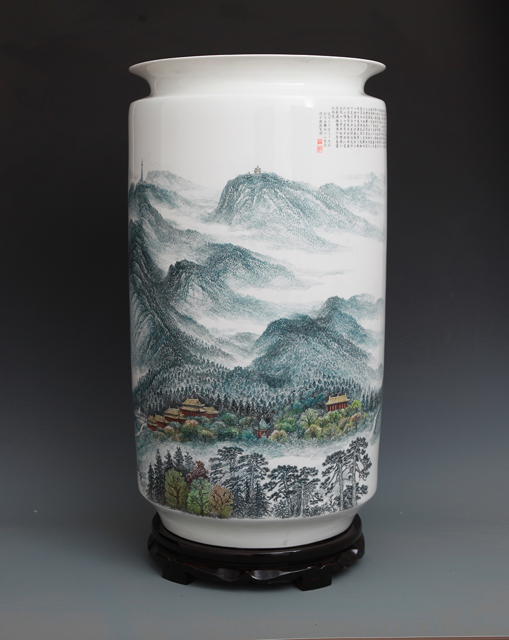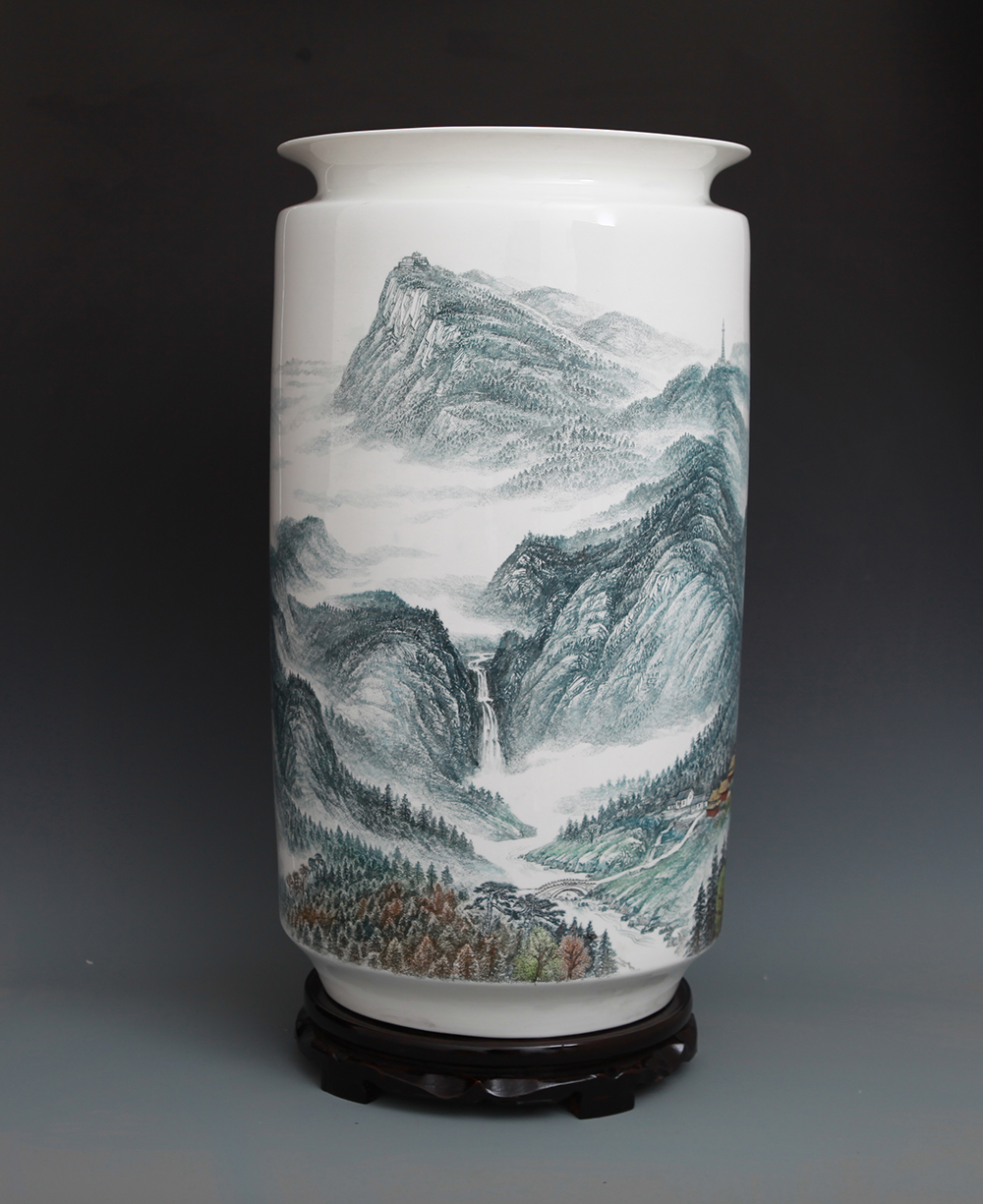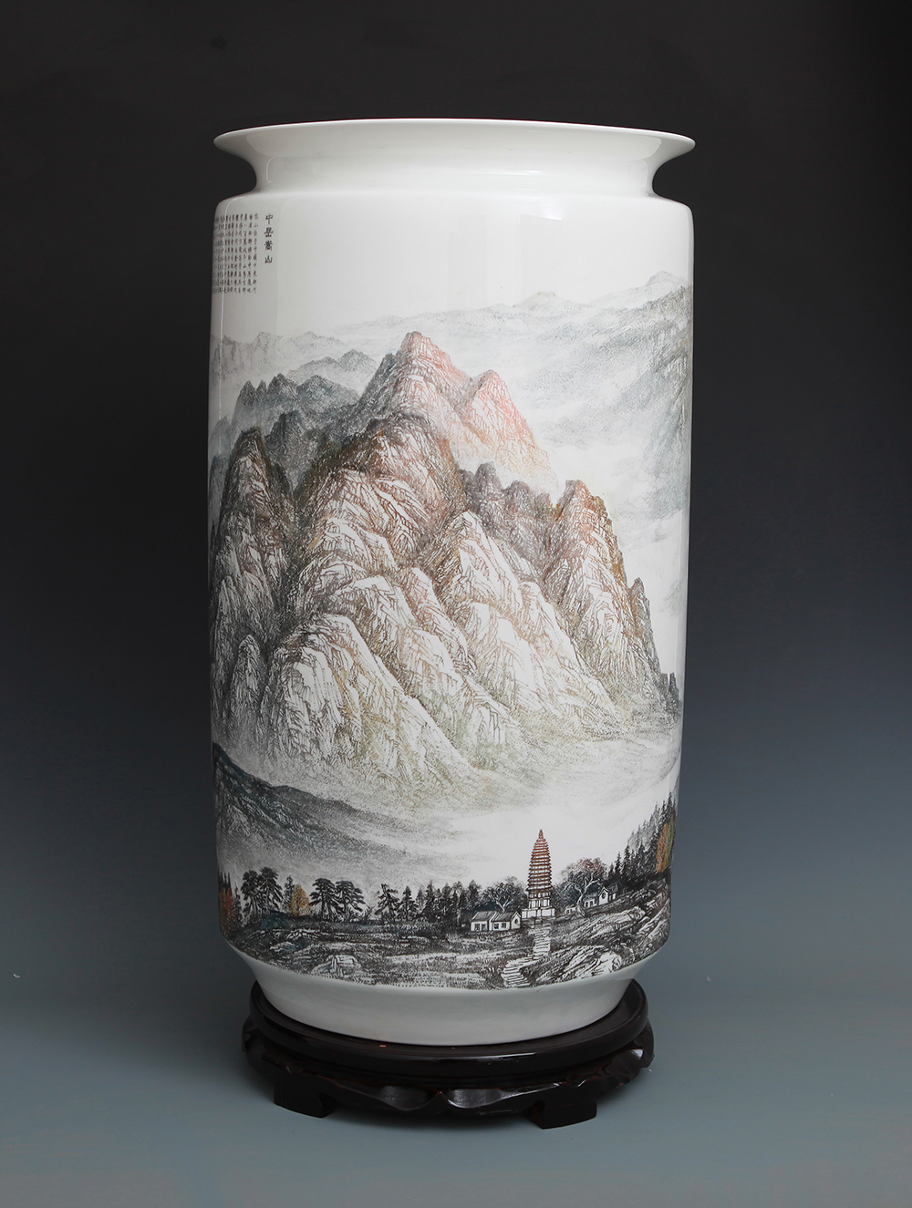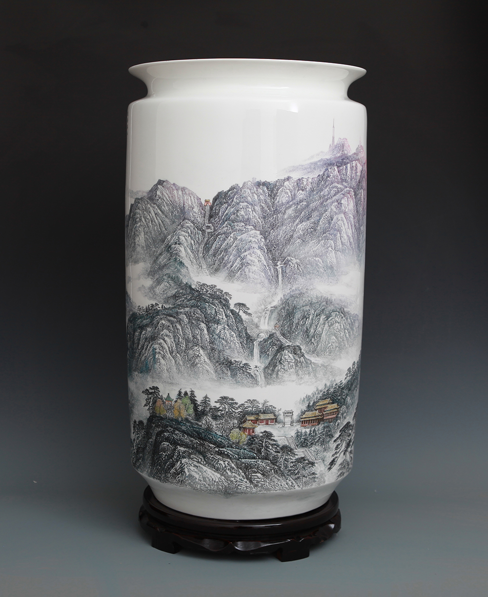 《中华五岳雄千古系列作品之一——中岳嵩山》刻瓷瓶,高65cm..