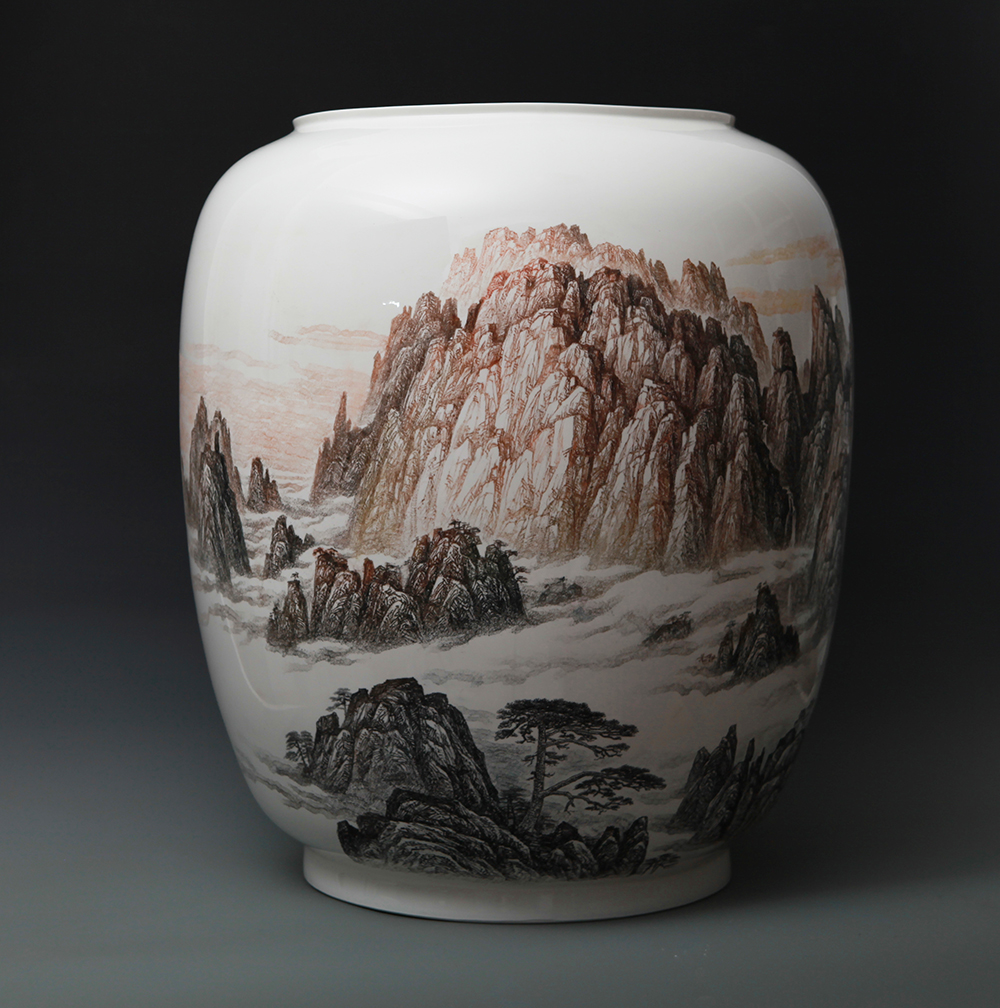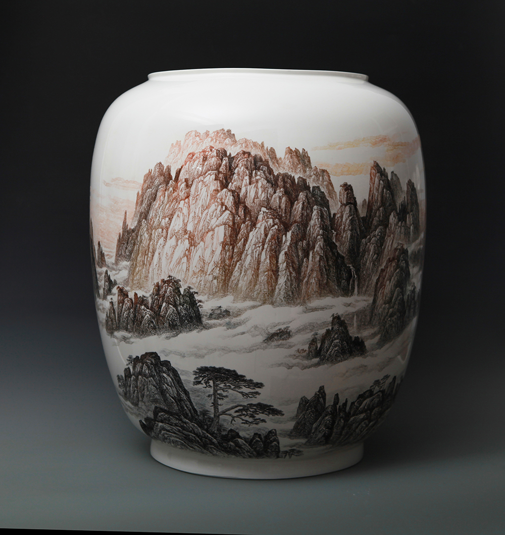 《中华五岳雄千古系列作品之一——南岳衡山》刻瓷瓶,高65cm,