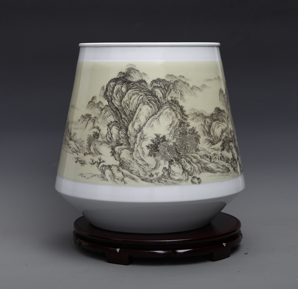 丁邦海《匡庐图》刻瓷瓶 高50厘米