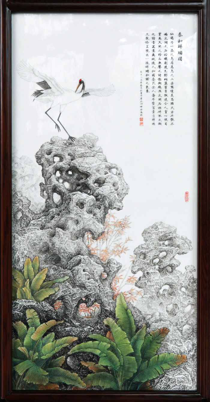 《泰和祥瑞图》刻瓷板 高1200mm 宽600mm