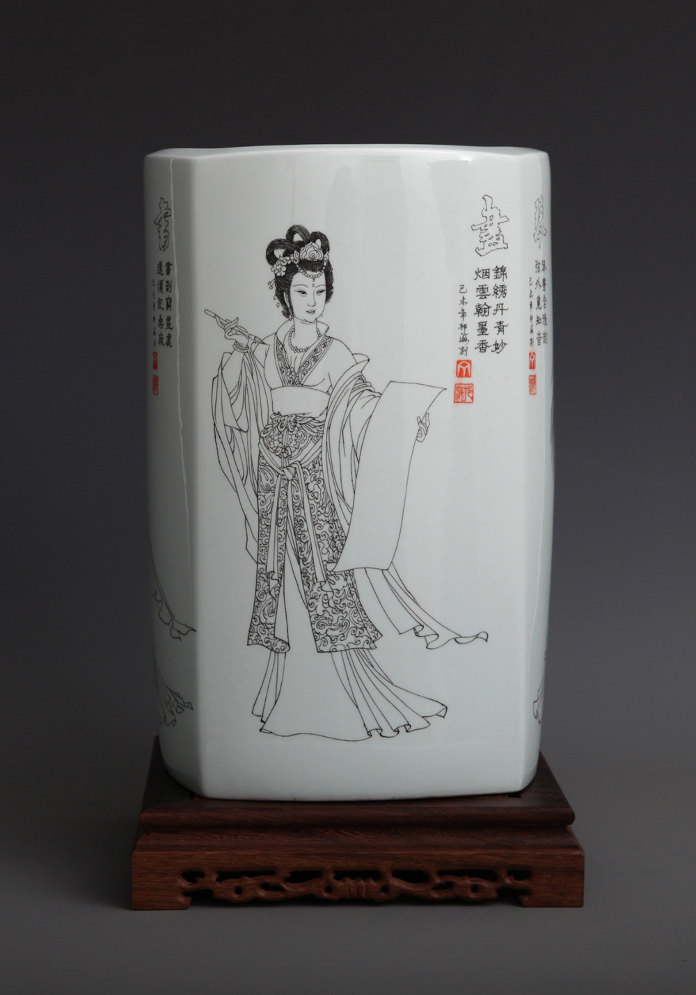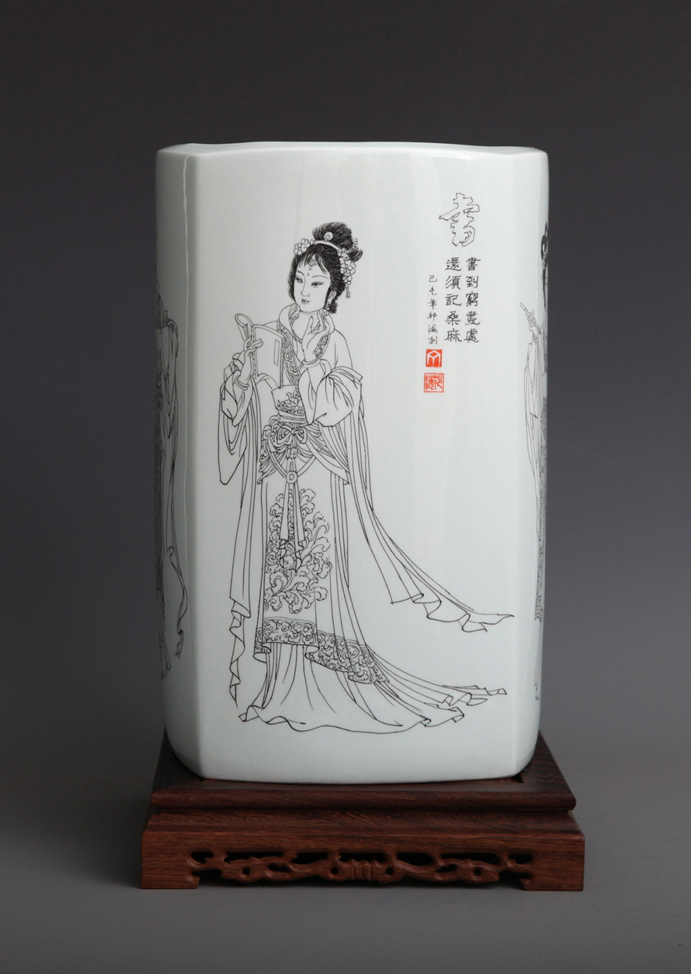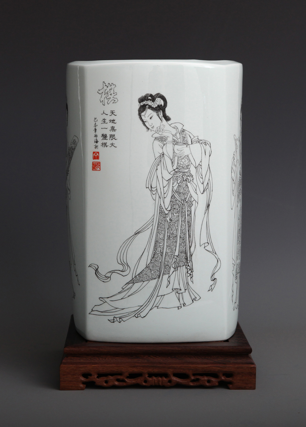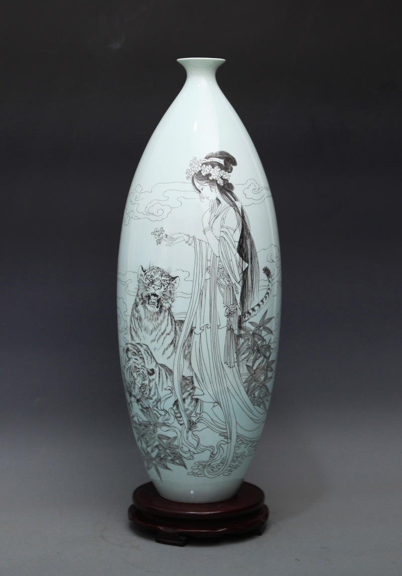 《琴棋书画——画》刻瓷瓶 高35cm