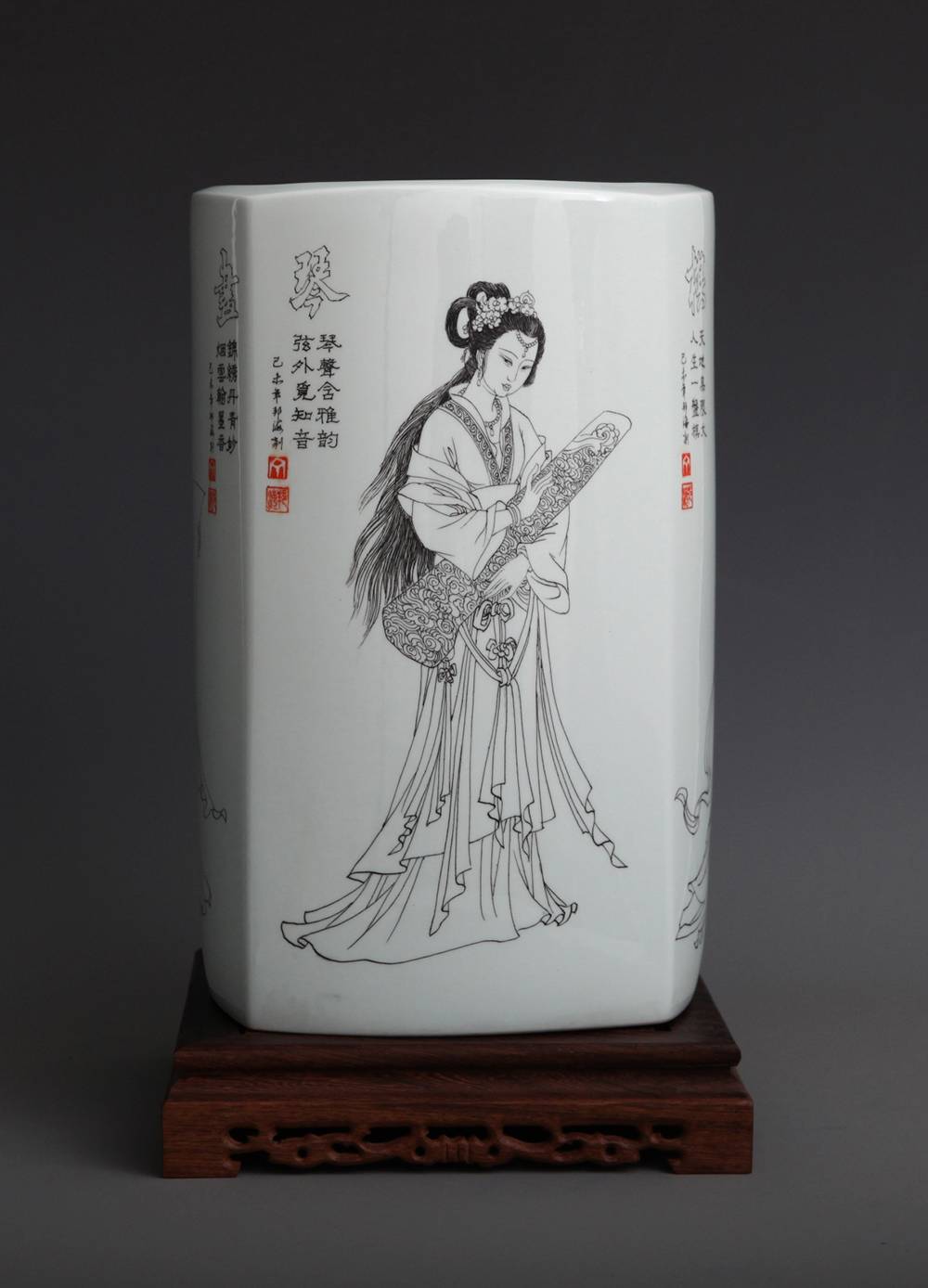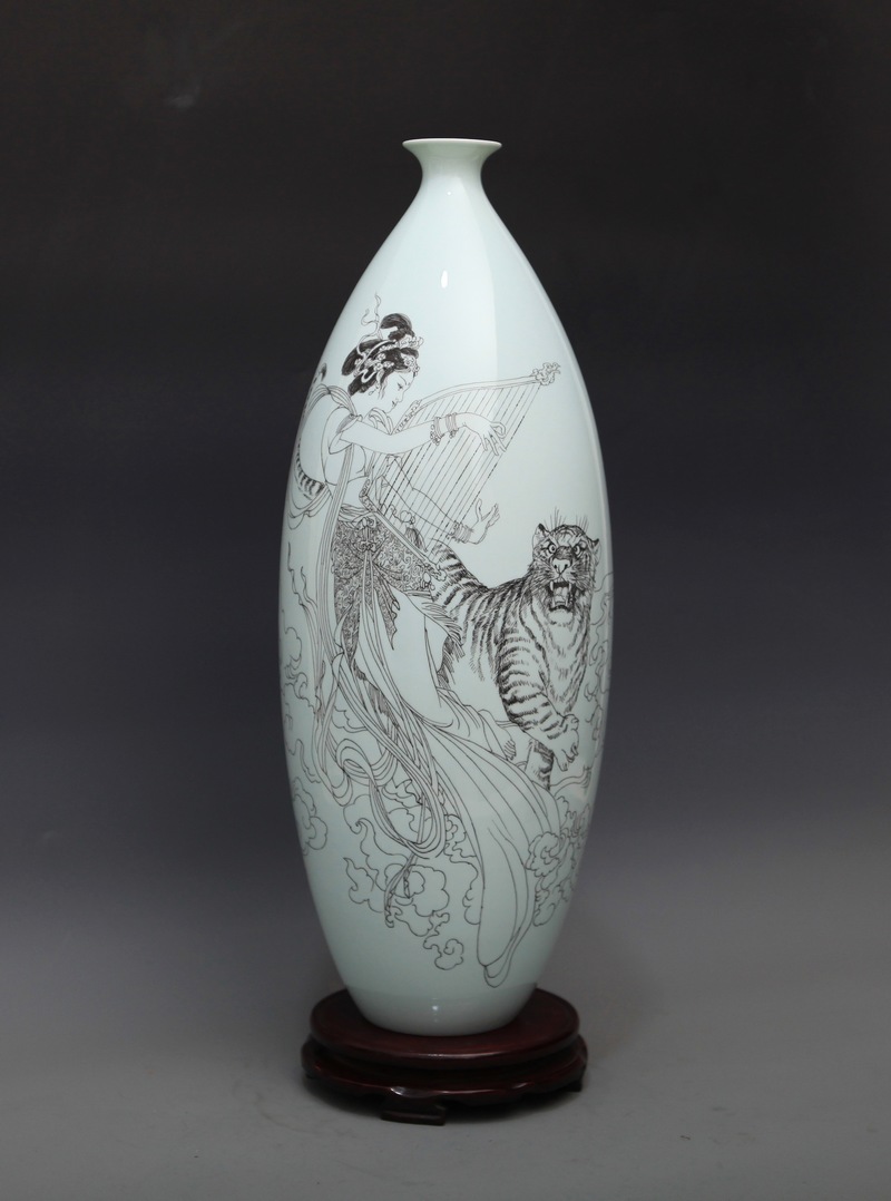 《琴棋书画—琴》刻瓷瓶 高35cm