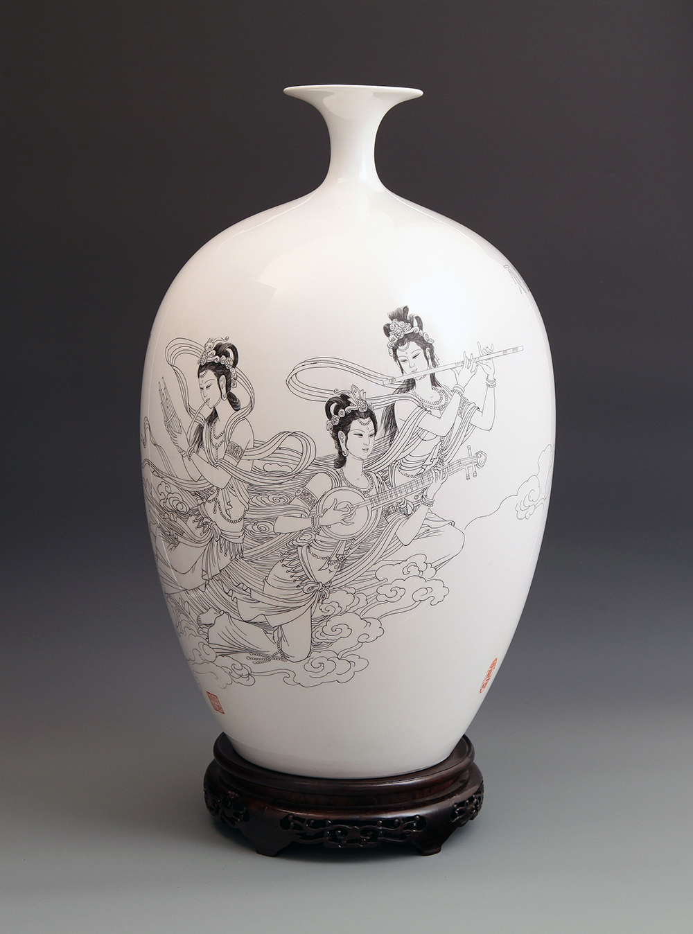 丁邦海《妙音和弦》刻瓷瓶 高500mm