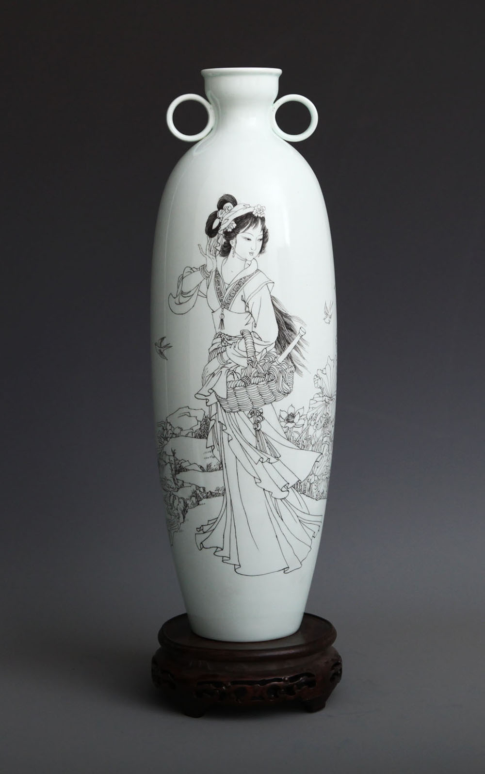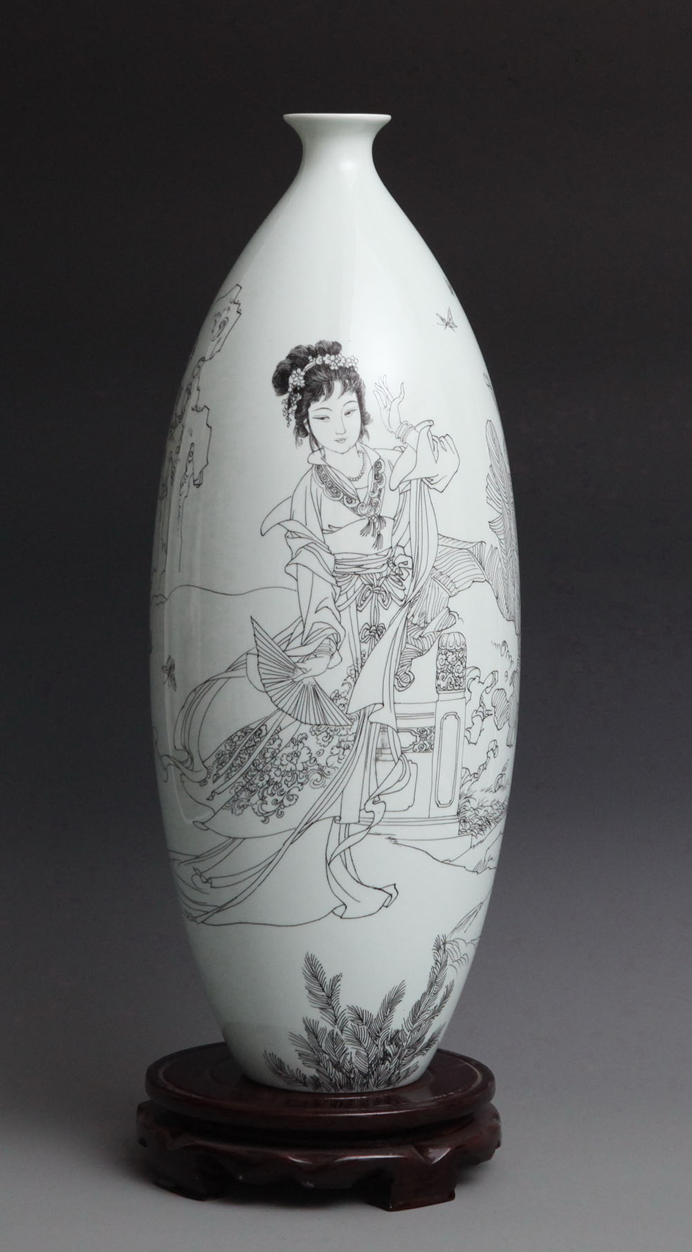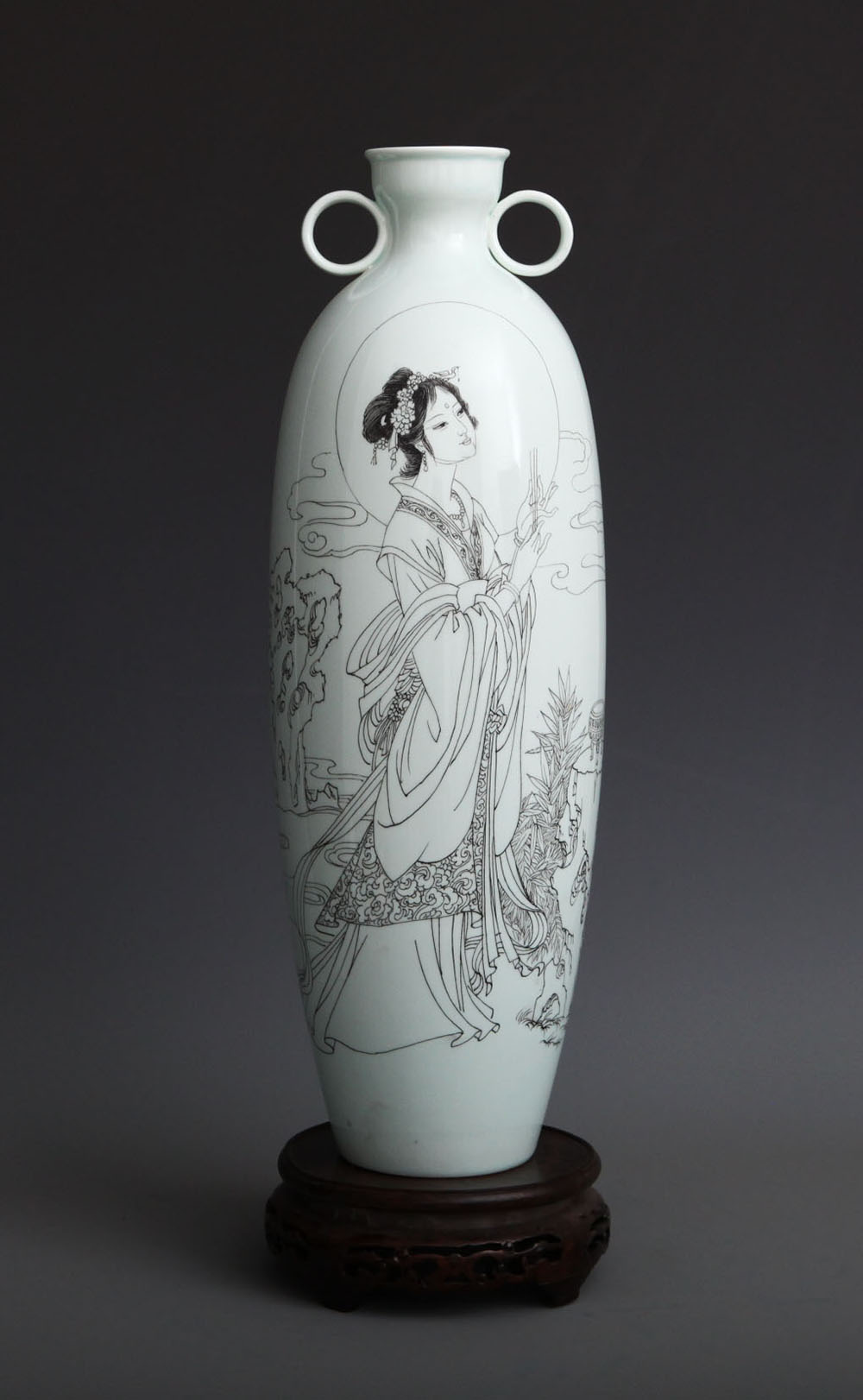 《四美人——闭月之貂蝉》刻瓷瓶 高45cm