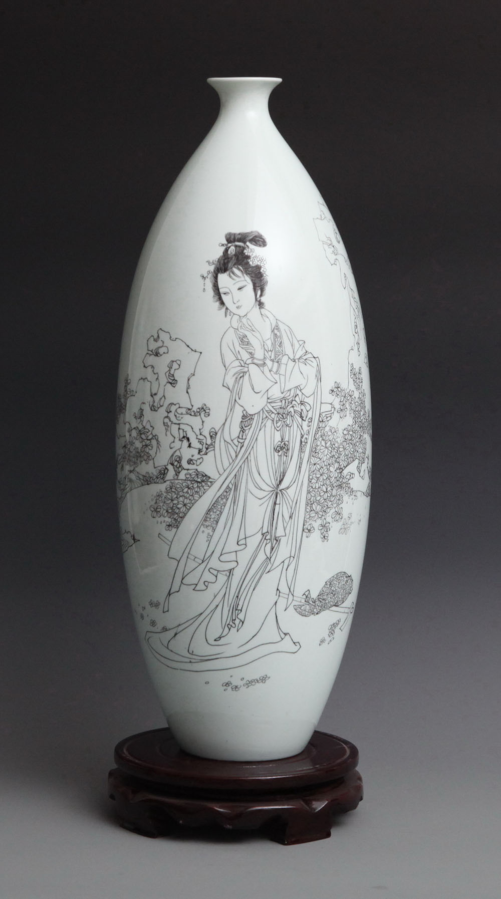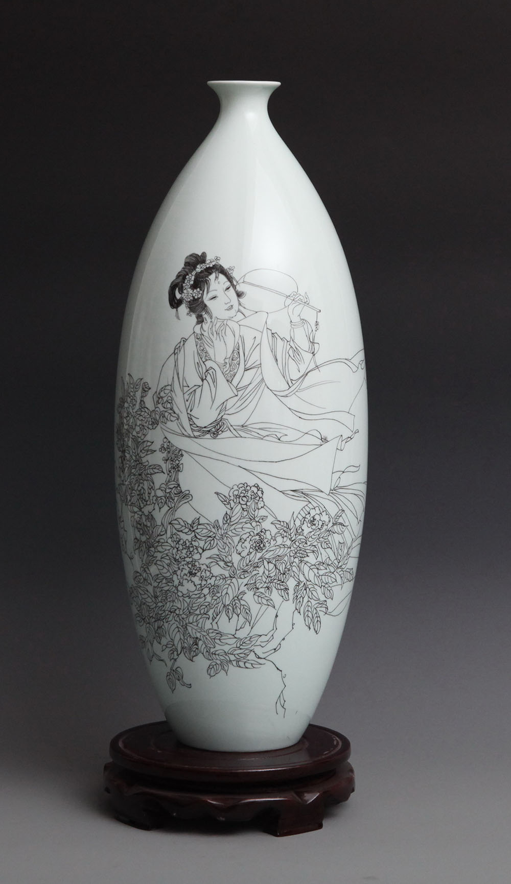 林黛玉《金陵十二钗》人物之一,刻瓷瓶、高45cm