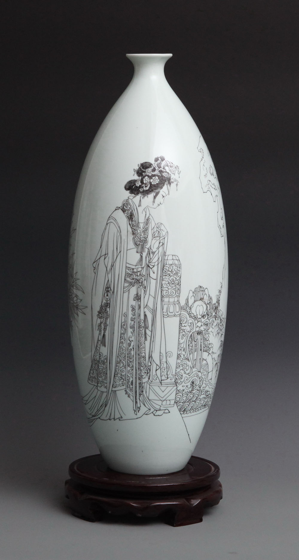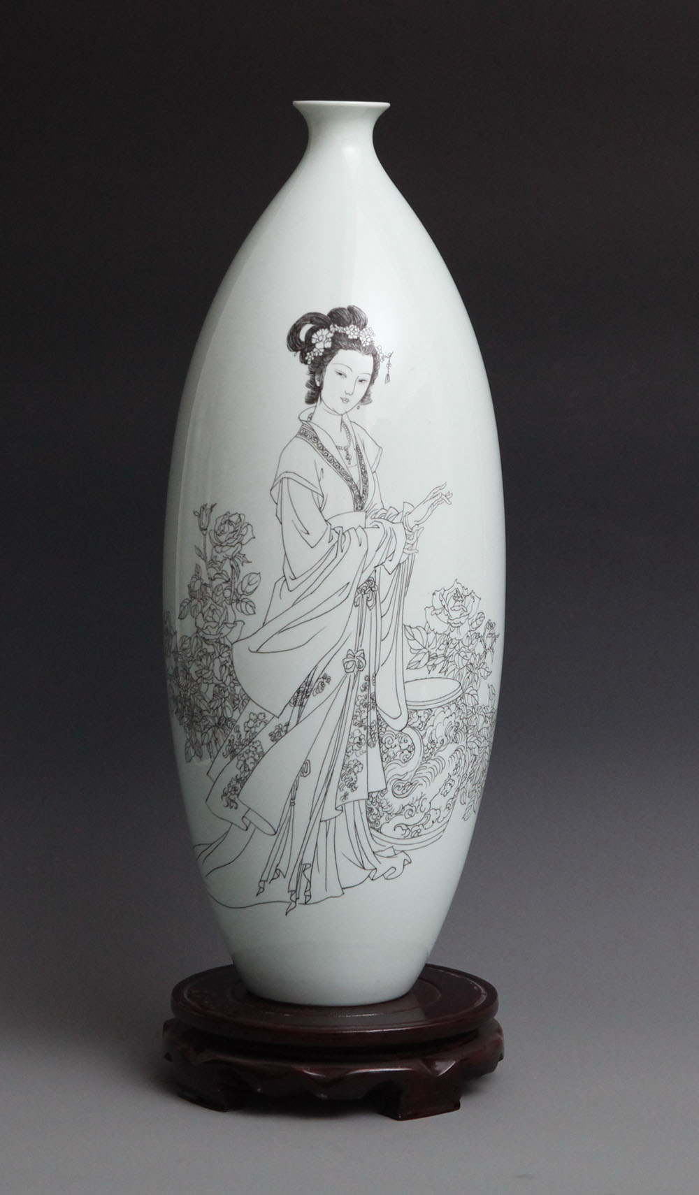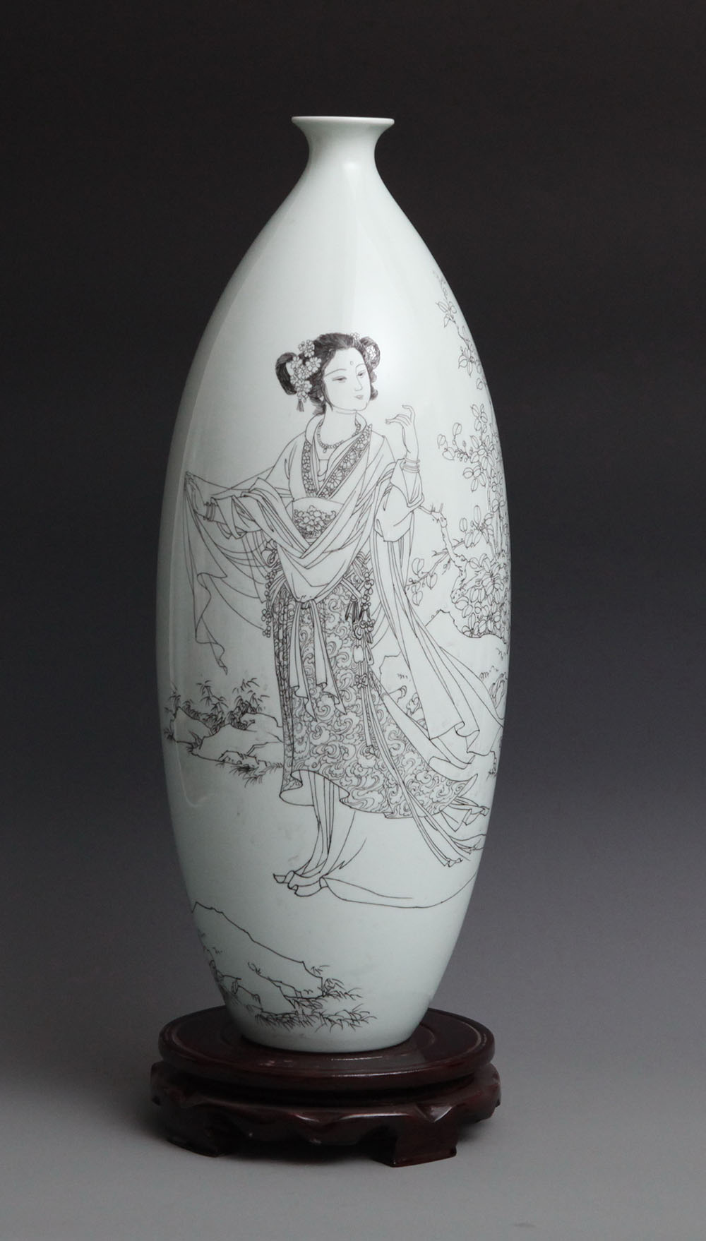 薛宝钗《金陵十二钗》人物之一,刻瓷瓶、高45cm