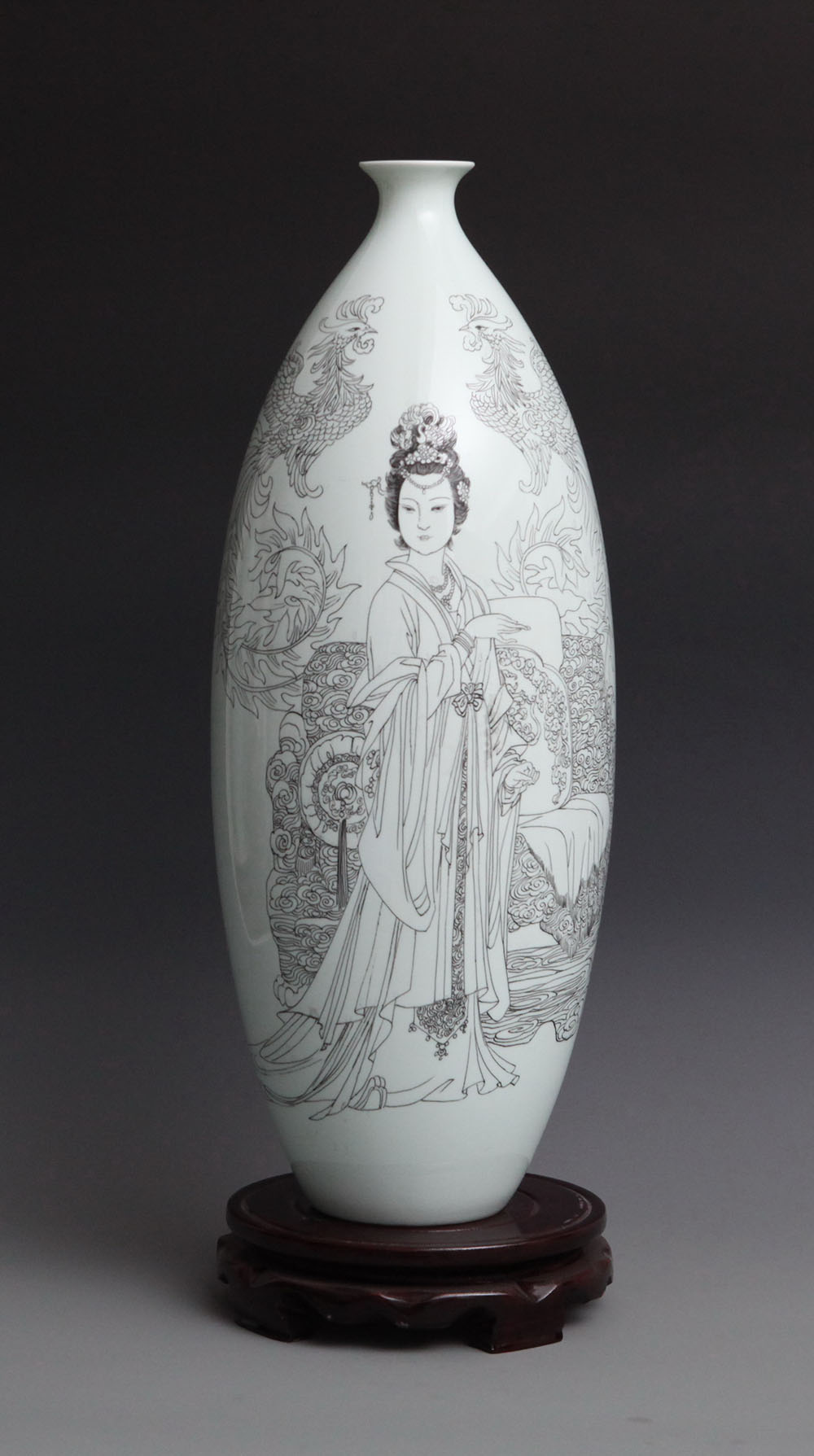 王熙凤《金陵十二钗》人物之一,刻瓷瓶、高45cm