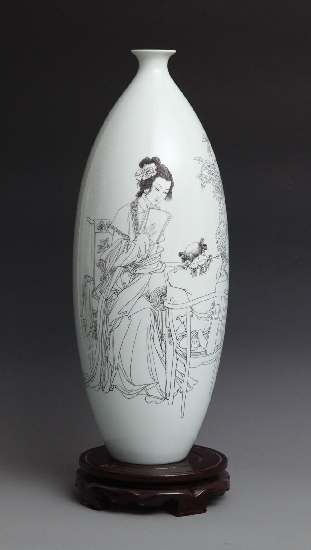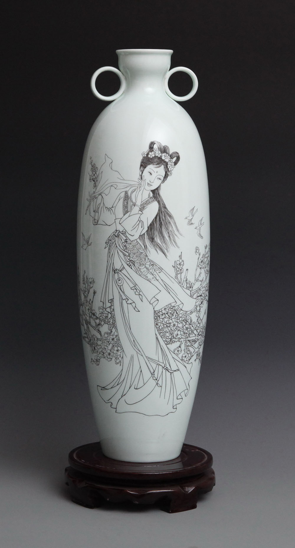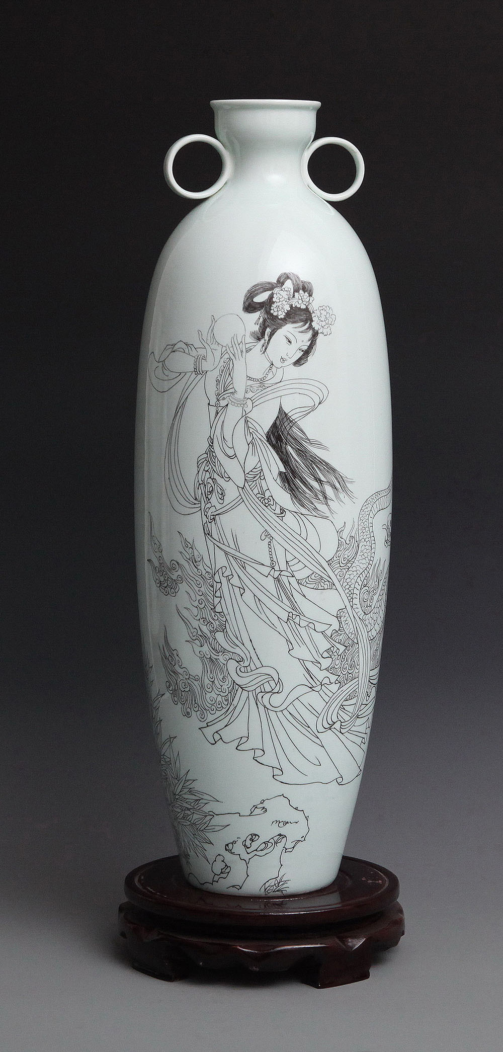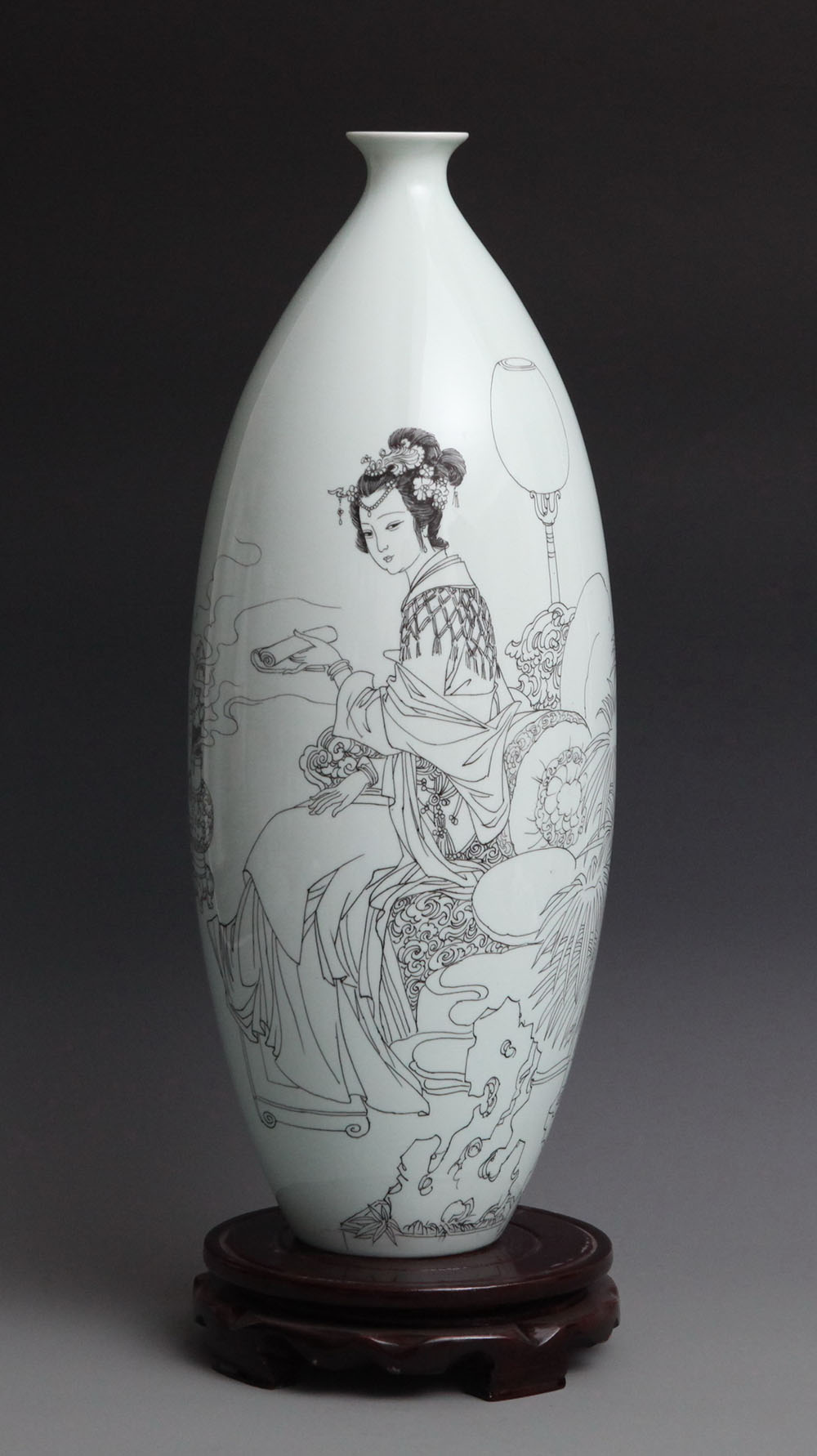 西湖主《聊斋十二钗》人物之一,刻瓷瓶、高46cm