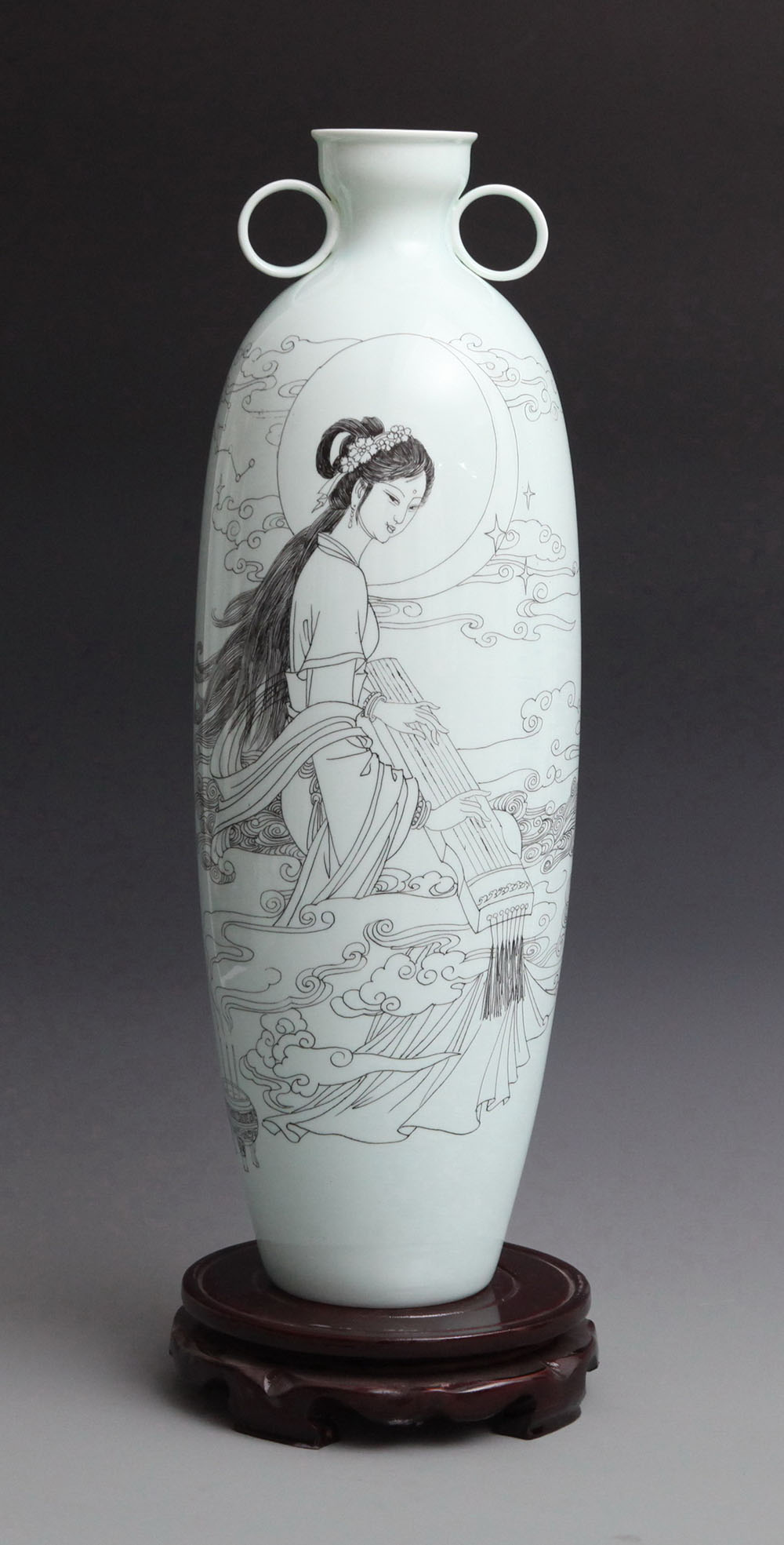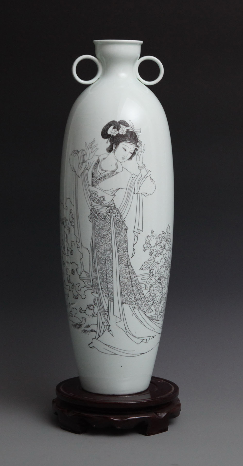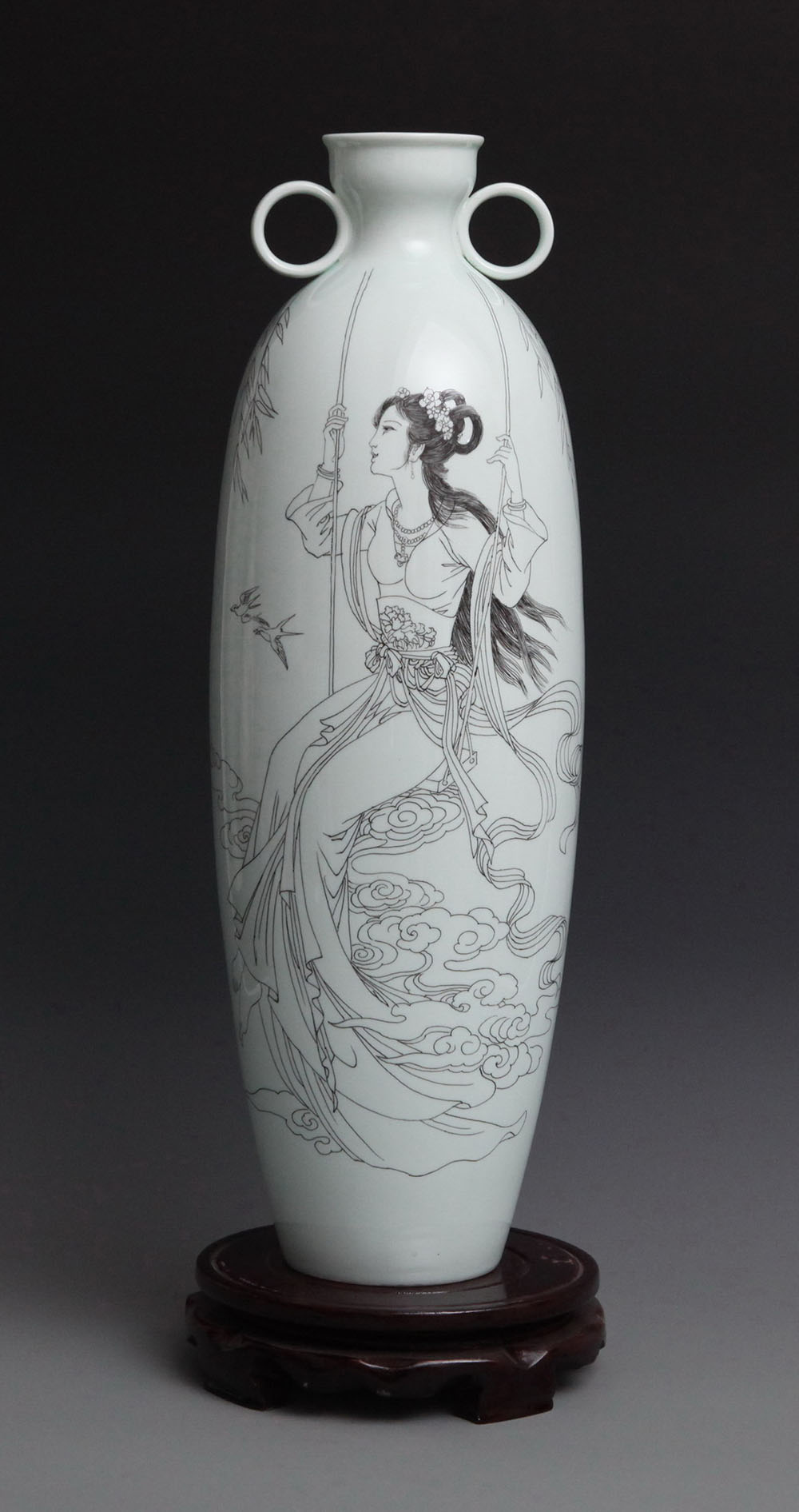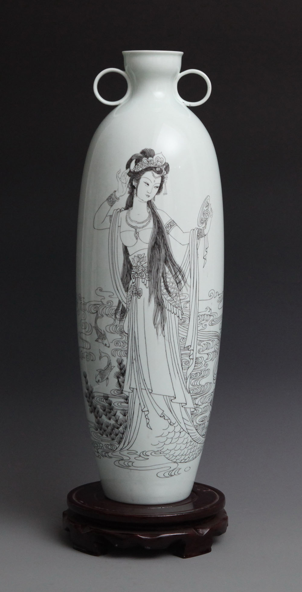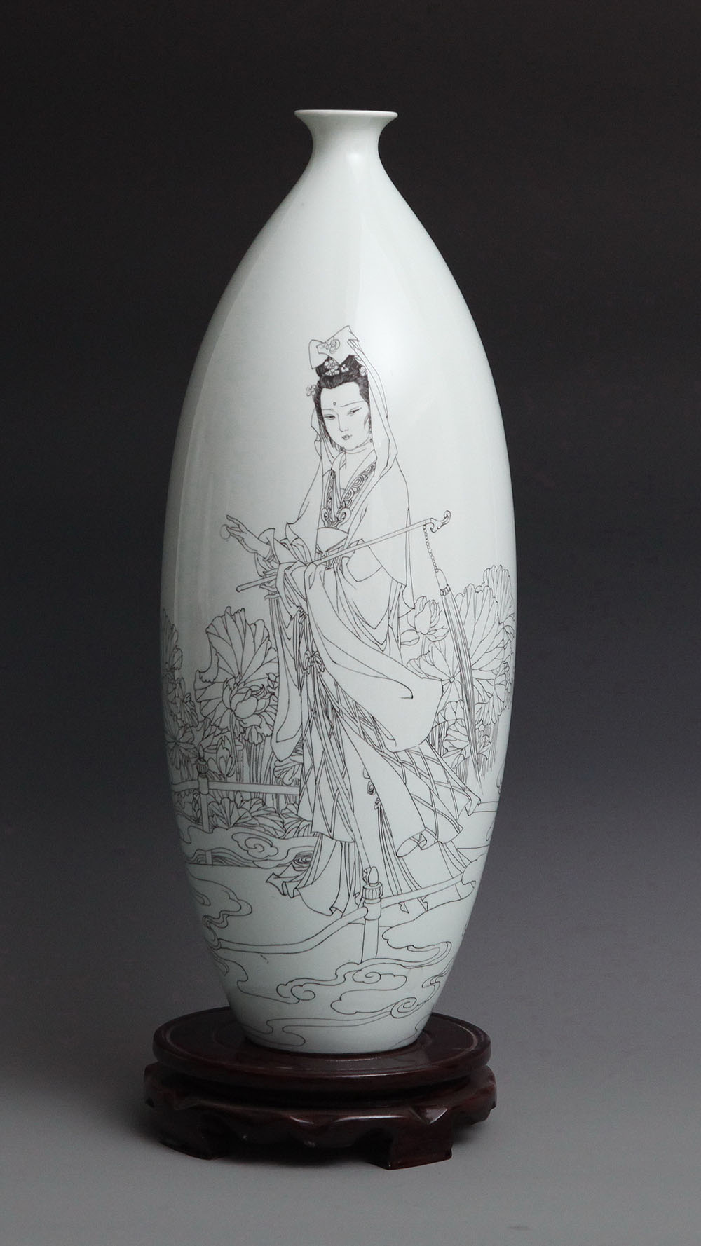 西湖主《聊斋十二钗》人物之一,刻瓷瓶、高46cm