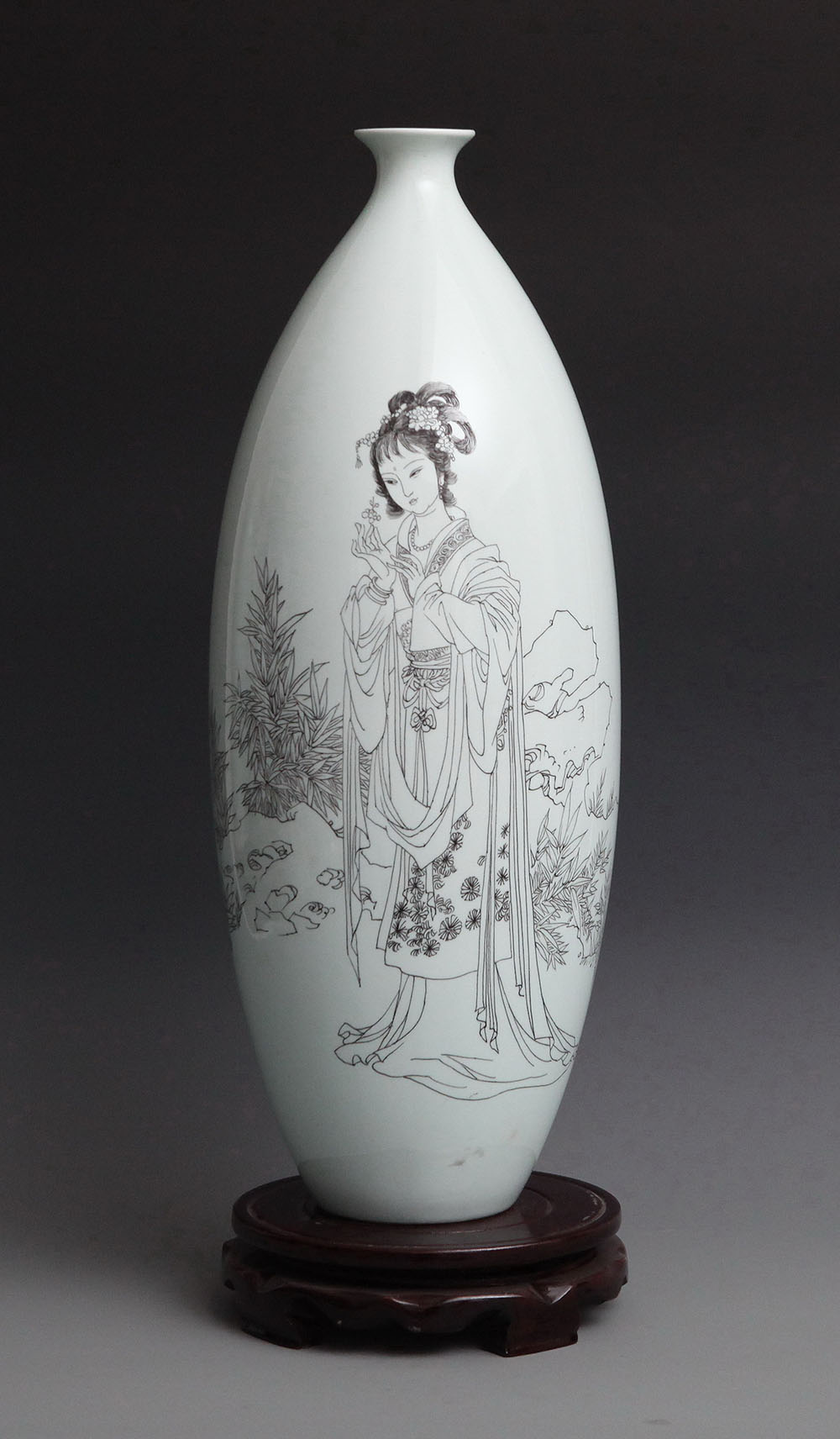 妙玉《金陵十二钗》人物之一,刻瓷瓶、高45cm