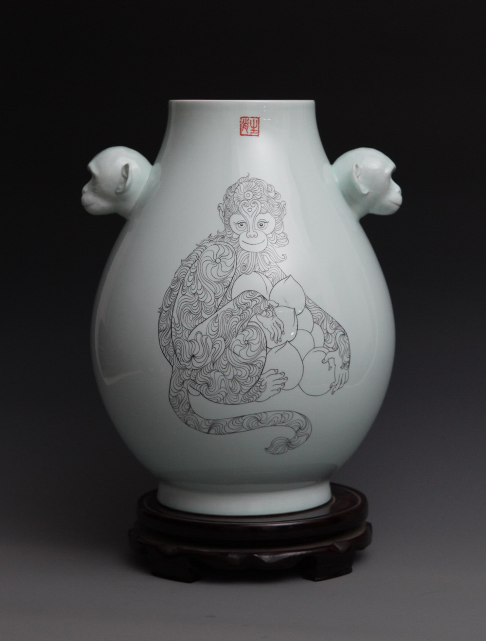 1.丁邦海 《共鸣》刻瓷瓶 高300m