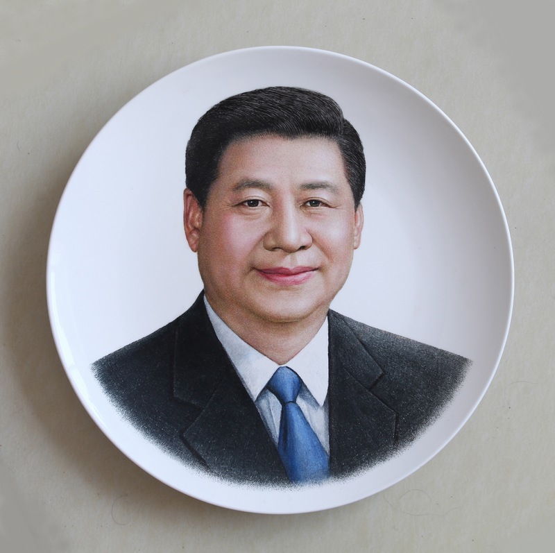 丁邦海 《孙启玉肖像》刻瓷盘 直径41cm