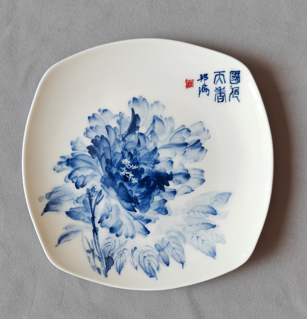 丁邦海《202》骨瓷青花盘,直径300mm-丁邦海刻瓷|丁邦海 黄玉双刻瓷艺术