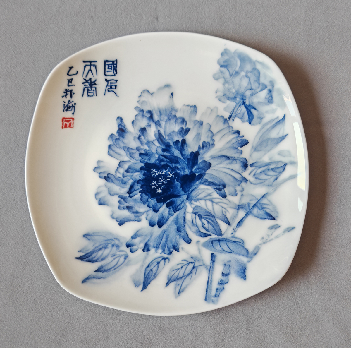丁邦海《202》骨瓷青花盘,直径300mm-丁邦海刻瓷|丁邦海 黄玉双刻瓷艺术