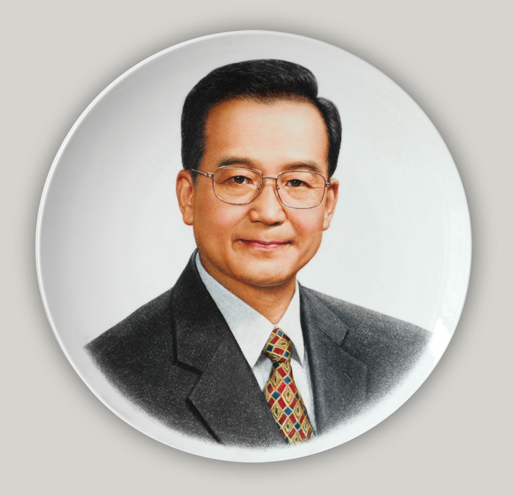 温家宝像-丁邦海刻瓷|丁邦海 黄玉双刻瓷艺术