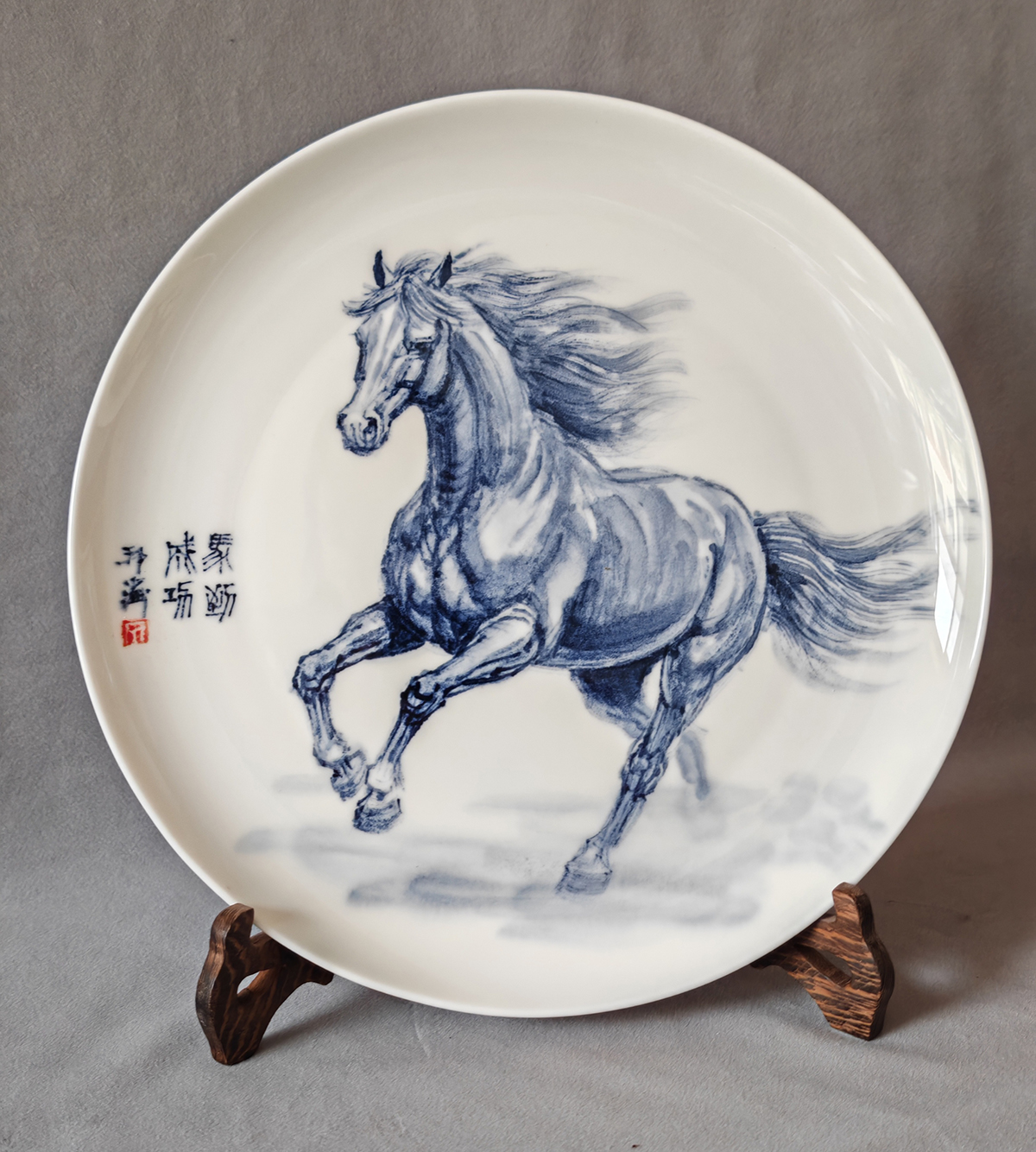 丁邦海《507》骨瓷青花盘,直径300mm-丁邦海刻瓷|丁邦海 黄玉双刻瓷艺术