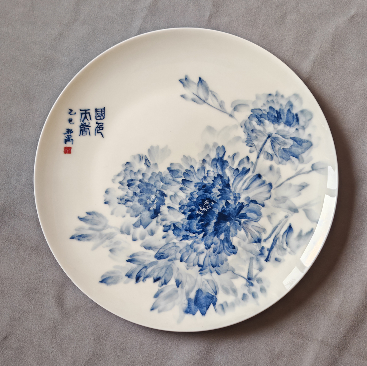 丁邦海《202》骨瓷青花盘,直径300mm-丁邦海刻瓷|丁邦海 黄玉双刻瓷艺术
