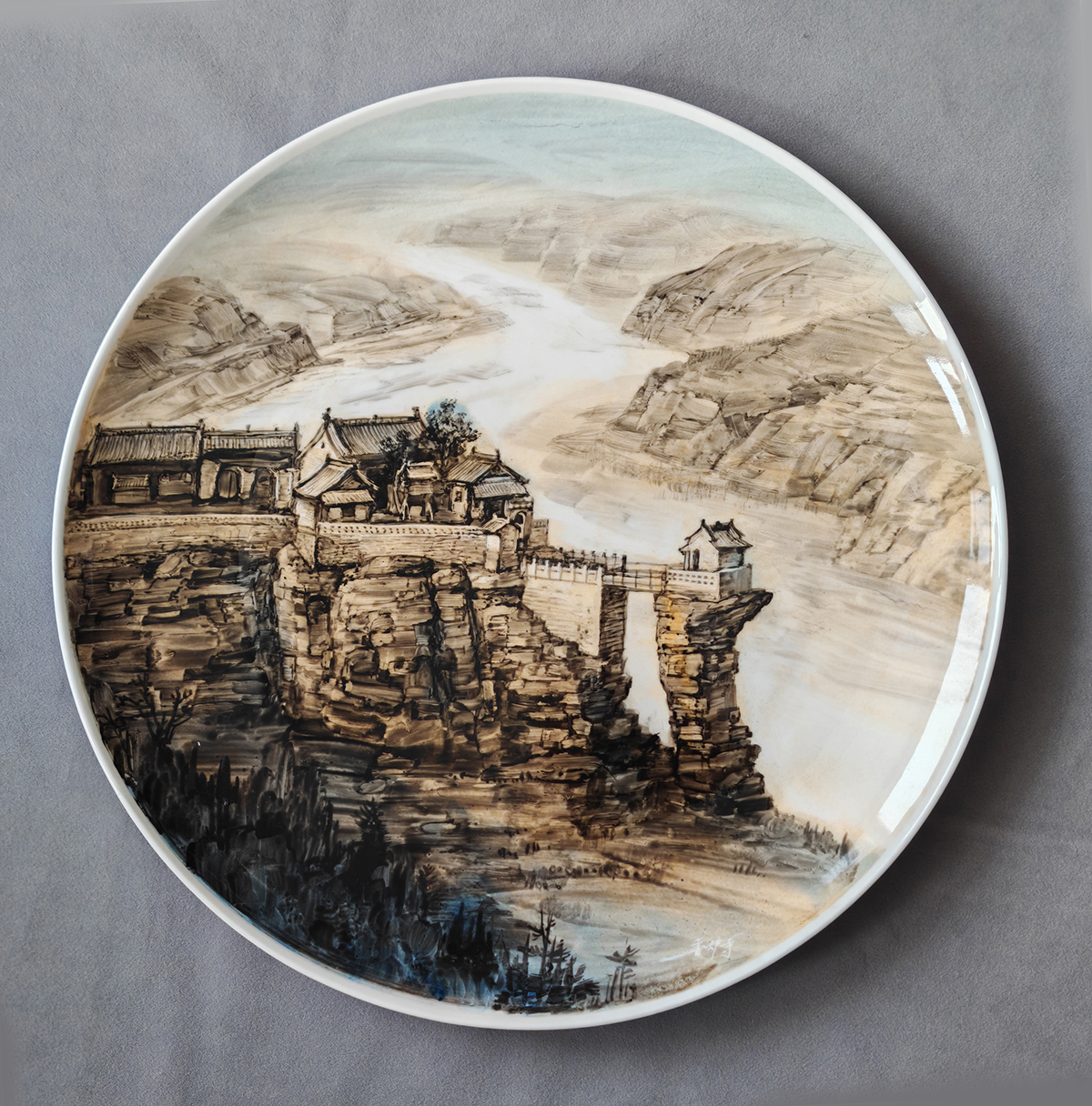 丁邦海《香炉寺》釉上彩绘盘,直径370mm-丁邦海刻瓷|丁邦海 黄玉双刻瓷艺术