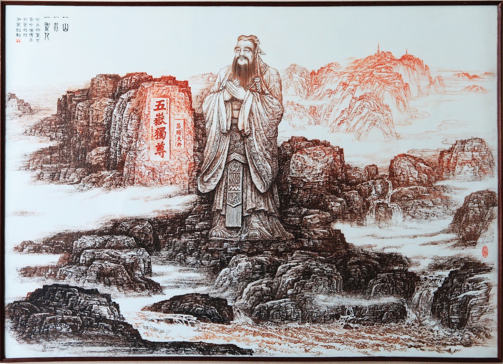 丁泓楚《一山一水一圣人》刻瓷板 85cmx60cm