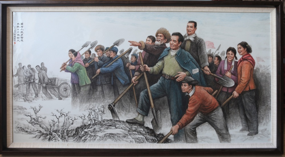 丁邦海《兰考人民多奇志 敢教日月换新天》刻瓷板。大3分版出血