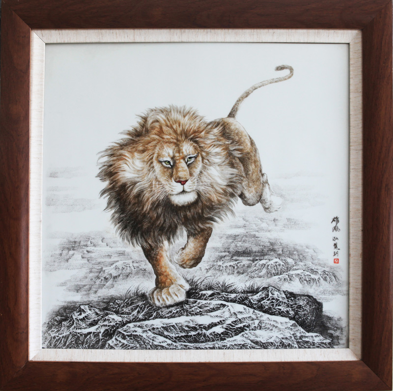 丁泓楚《雄风》刻瓷板-高600mm 宽600mm