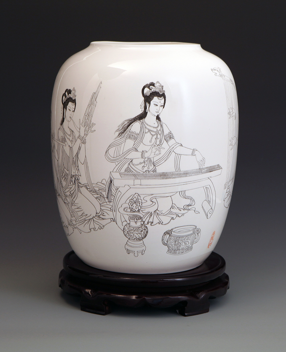 丁邦海《妙音和弦》刻瓷瓶 高500mm