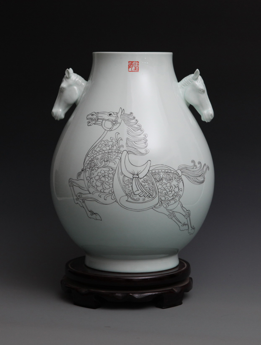 1.丁邦海 《共鸣》刻瓷瓶 高300m