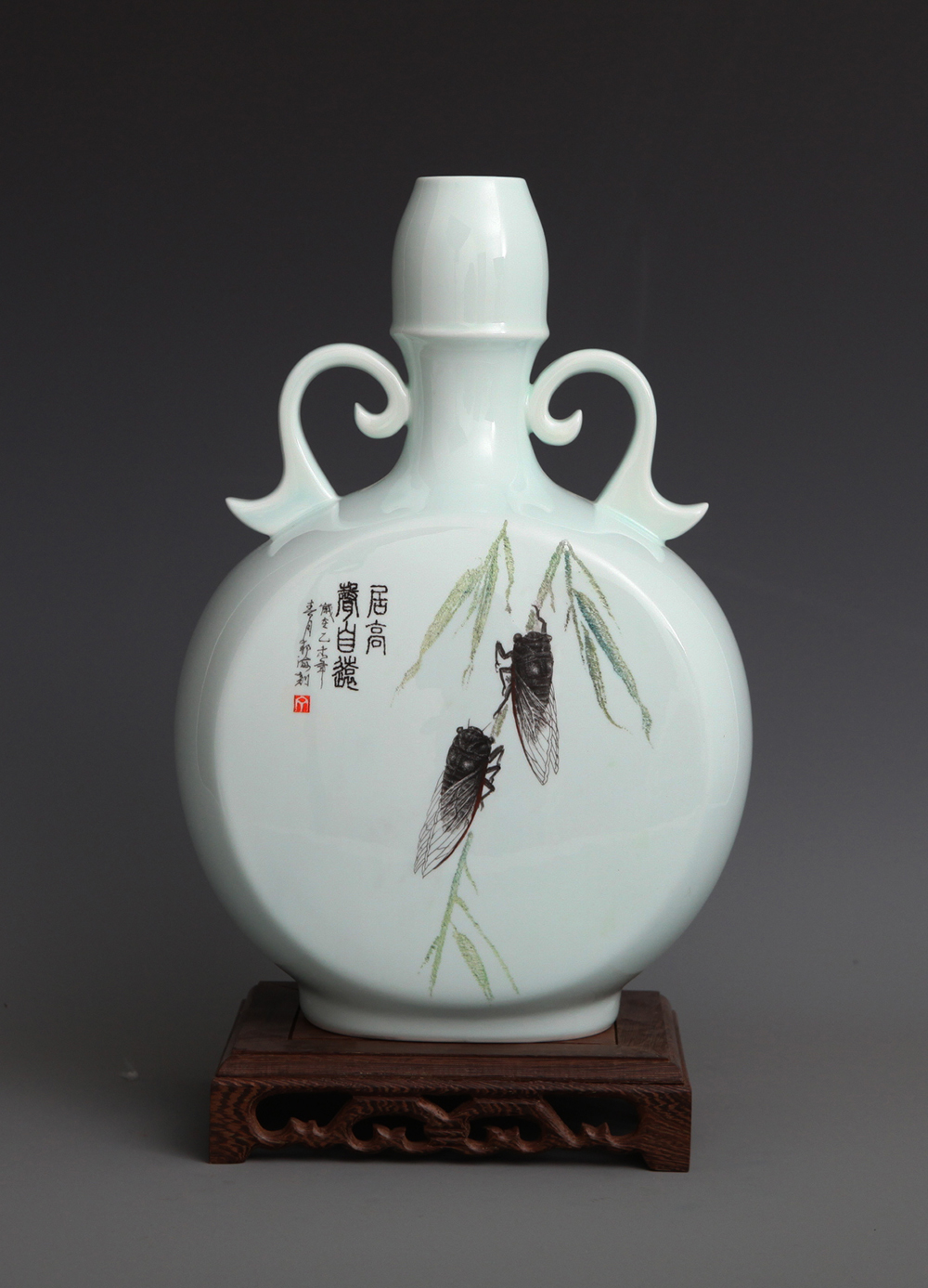 2.丁邦海 《居高声自远》刻瓷瓶 高300mm