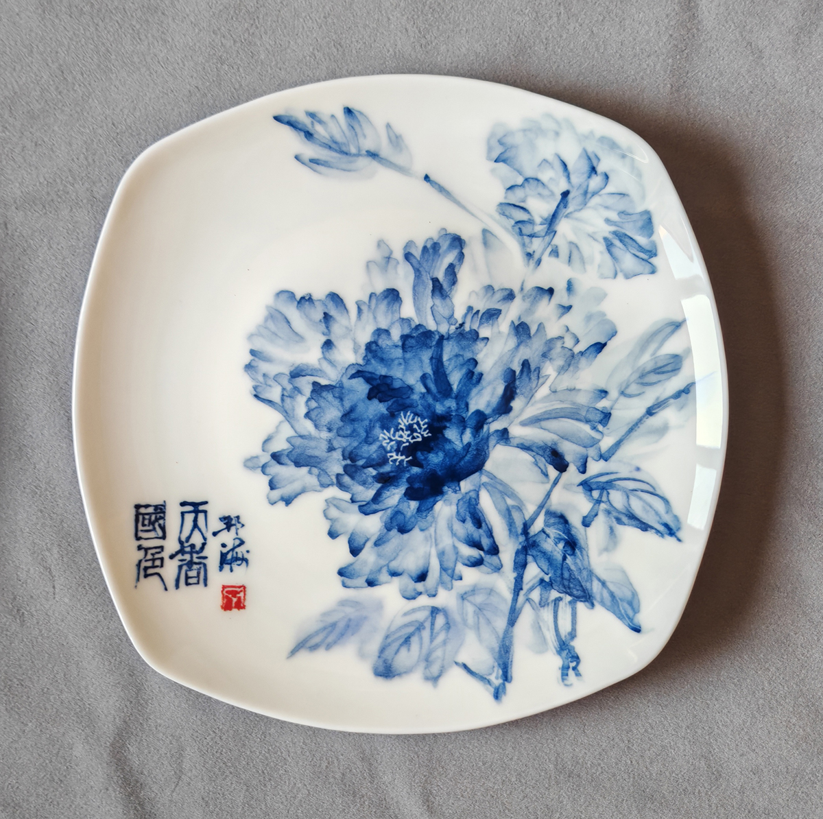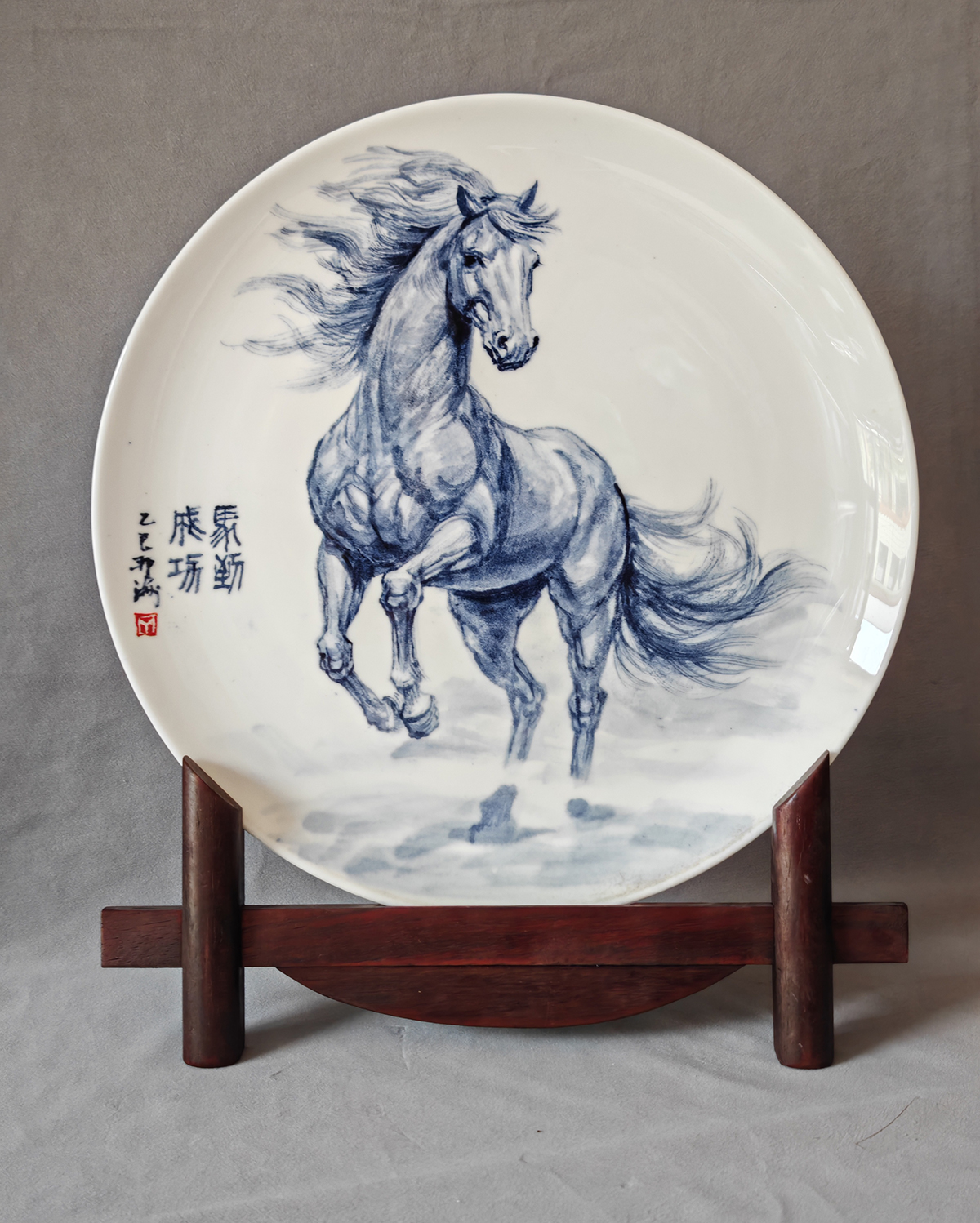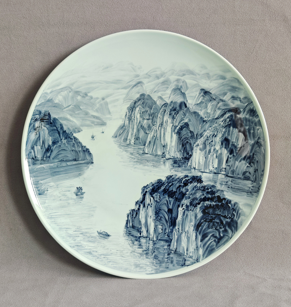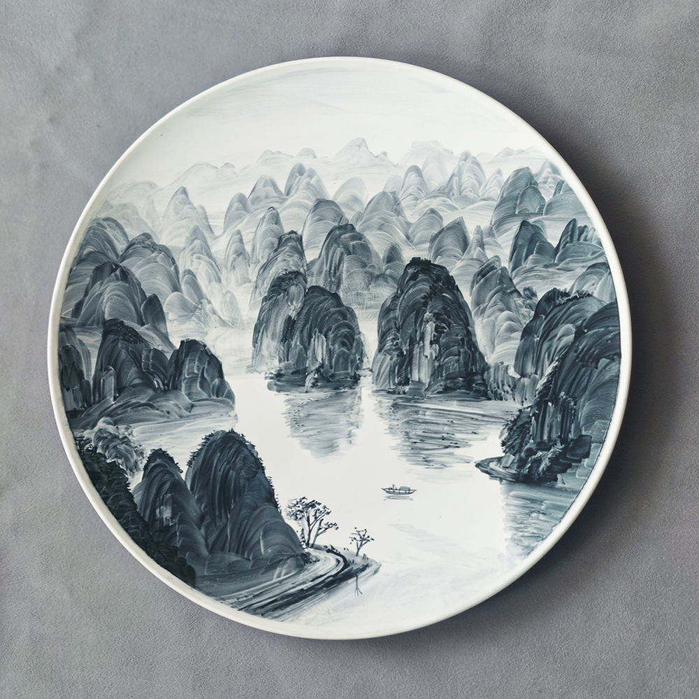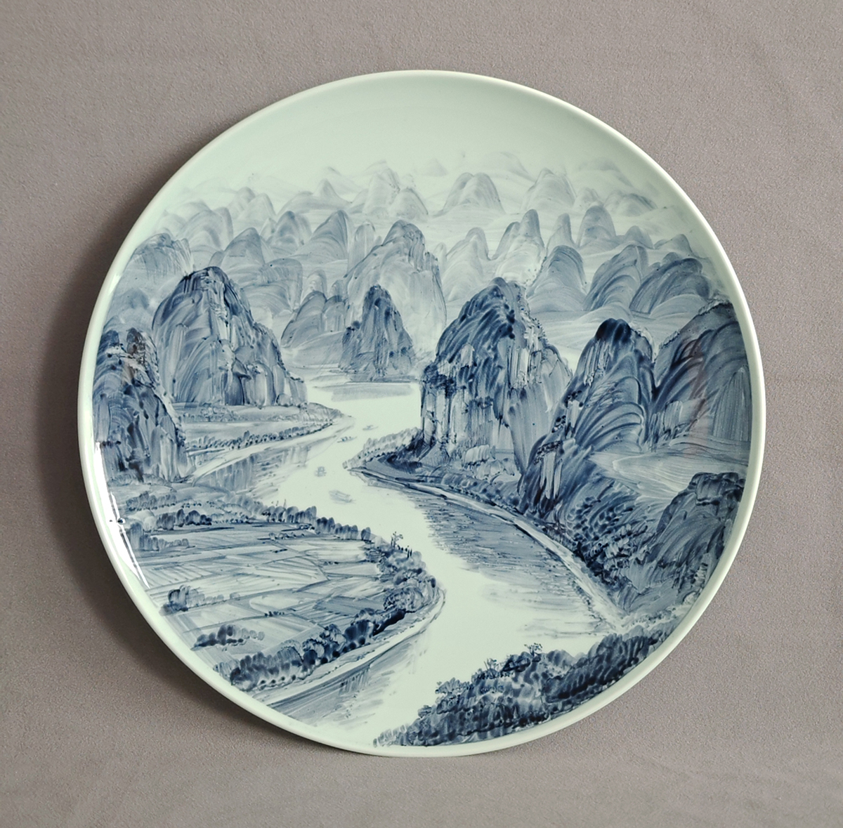 丁邦海《漓江系列》骨瓷青花盘,直径300mm