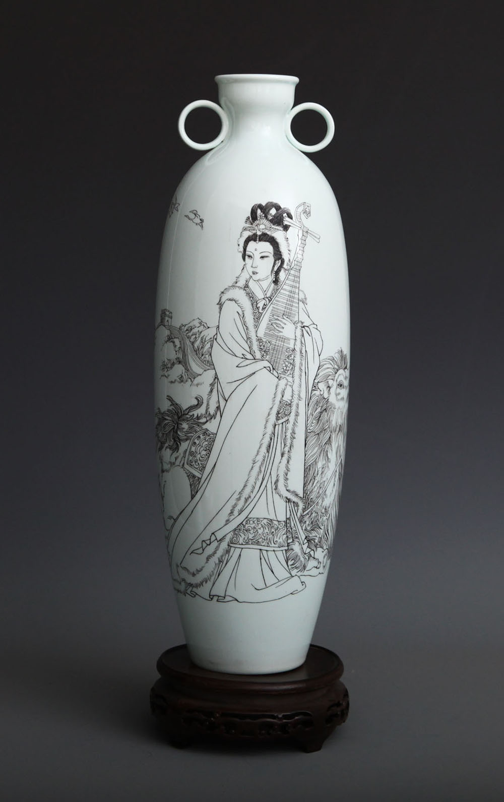 《四美人——闭月之貂蝉》刻瓷瓶 高45cm