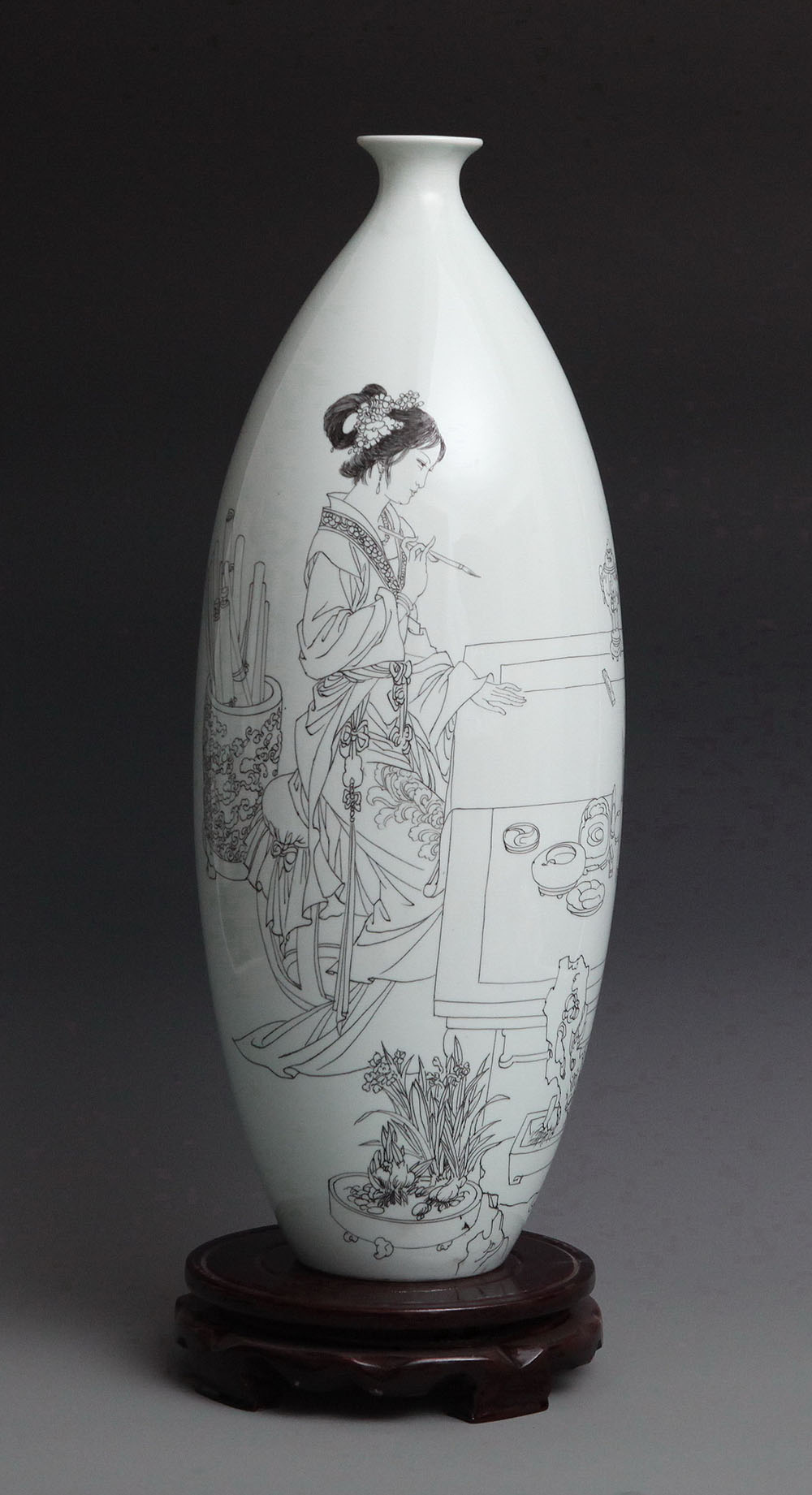 林黛玉《金陵十二钗》人物之一,刻瓷瓶、高45cm