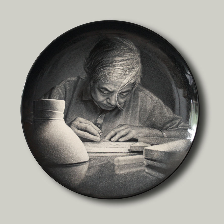 张守智工作像-丁邦海刻瓷|丁邦海 黄玉双刻瓷艺术