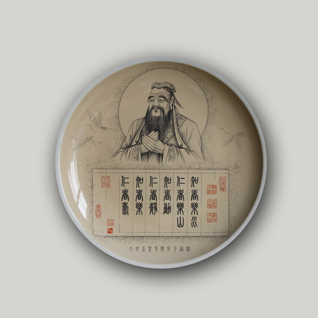 孔子-丁邦海刻瓷|丁邦海 黄玉双刻瓷艺术