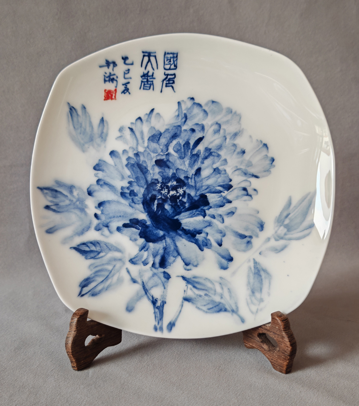 丁邦海《202》骨瓷青花盘,直径300mm-丁邦海刻瓷|丁邦海 黄玉双刻瓷艺术